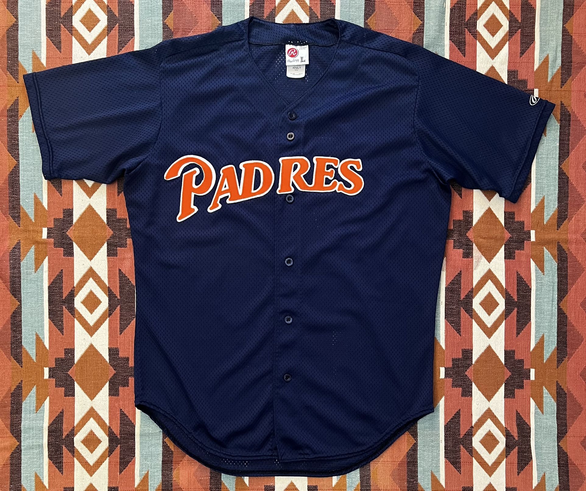 MLB Vintage 90’s Rawlings Lightweight Mesh Practice Jersey Men’s Large Excellent pre-owned vintage jersey. This classic Padres jersey is in great condition and features all sewn numbers and https://offerup.com/redirect/?o=bGV0dGVycy5Jbg== 1997, the team had two minor league teams with the same nickname(Padres) the Dominican Summer League Padres and the Arizona League Padres. Length 30” Width 23.5” Item described and shown in photos is what you will receive. PLEASE SEE ALL PHOTOS FOR DETAILS, CONDITION AND FOR APPROXIMATE LAY FLAT MEASUREMENTS. Please compare measurement photos to your favorite garments to ensure fit. Please feel free to ask questions you may have, I answer most instantly! Thanks for your interest.