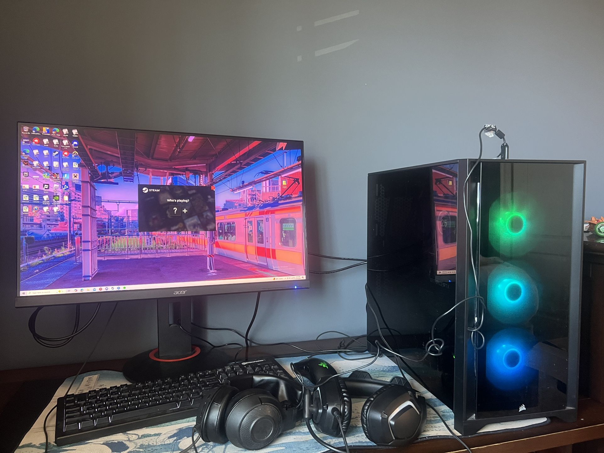 Fully set up and complete PC set up, below are specs. Drivers are installed newest windows 10. I will throw in the keyboard monitor, headset, and mouse if you decide to buy . I no longer use my PC since going to college so I’m deciding to sell. It’s a great set up and super reliable parts, I just no longer need high computing power. Over 1 TB of storage . Price is negotiable but I feel this is generally fair for market price . Condition on this thing is great, I’ve never had any issues, and it’s just stayed in my room for its lifetime. 195073 AMD AMD RYZEN 5 5600X WRAITHS S/N: 9KJ9493Q20194 232421 SAMSUNG E 1TB 980EVO NVME M.2 SSD S/N: S64ANS0T(contact info removed)56 MSI RTX3060 VENTUS 3X 12G O S/N: 602-V397-145SY(contact info removed) CL0(contact info removed)52 MSI MAG B550 TOMAHAWK MAX WF S/N: 601-7C91-140B(contact info removed) NZXT KRAKEN Z53 LIQUID COOLER 153593 CORSAIR 4000X RGB ATX TG MT BLACK 326157 EVGA 850 GT 80+G FM ATX PSU S/N: (contact info removed)839907 1 984534 CORSAIR 16GB 2X8 D4 3200 C16 RGB