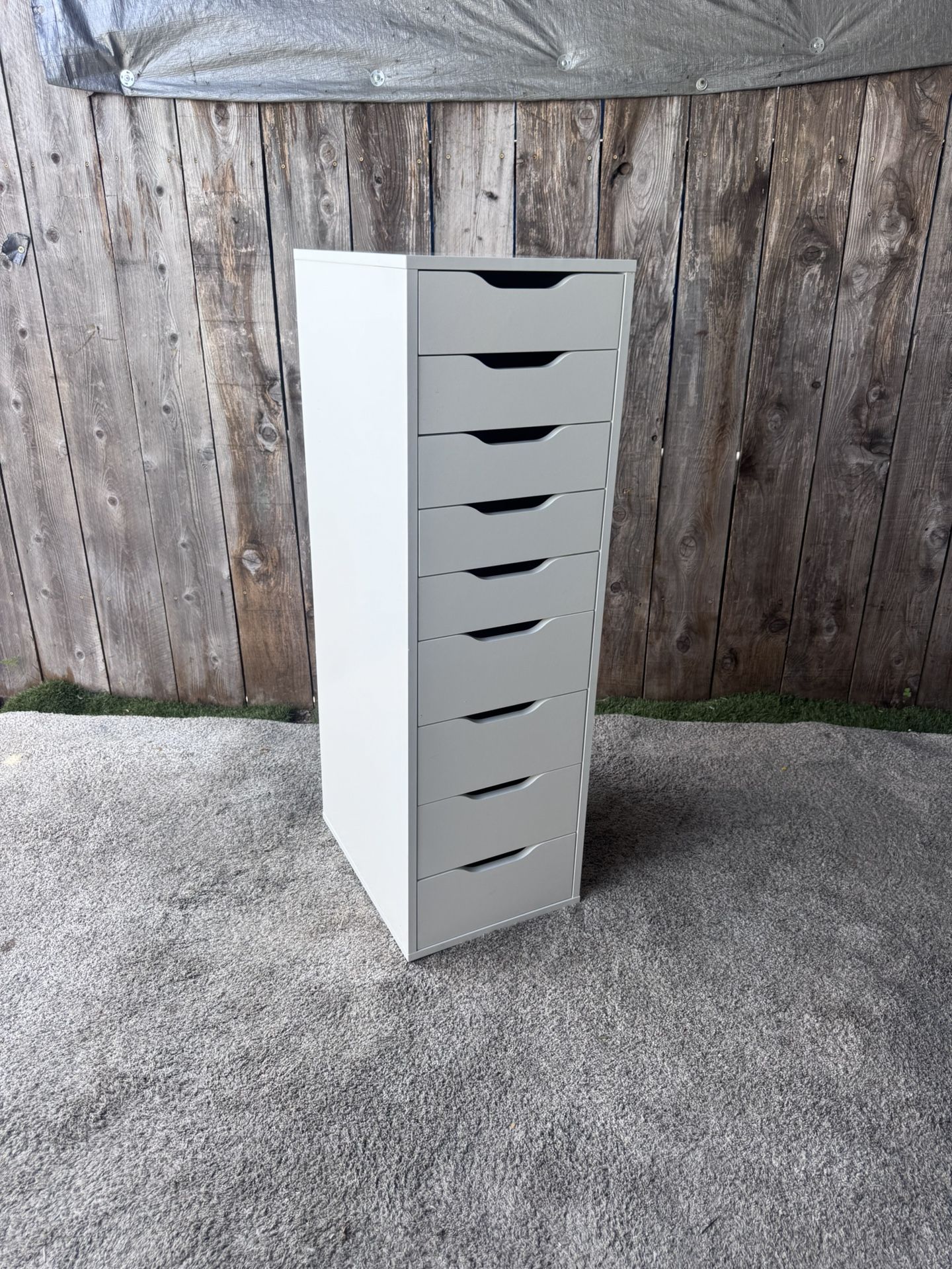 Great condition all draw slides smoothly as well clean and ready to use IKEA Drawer unit with 9 drawers selling for $270 PRICE IS FIRM IF NOT WILLING TO PAY THAT DONT MESSAGE ME FLAKES WILL BE BLOCKED THANKS