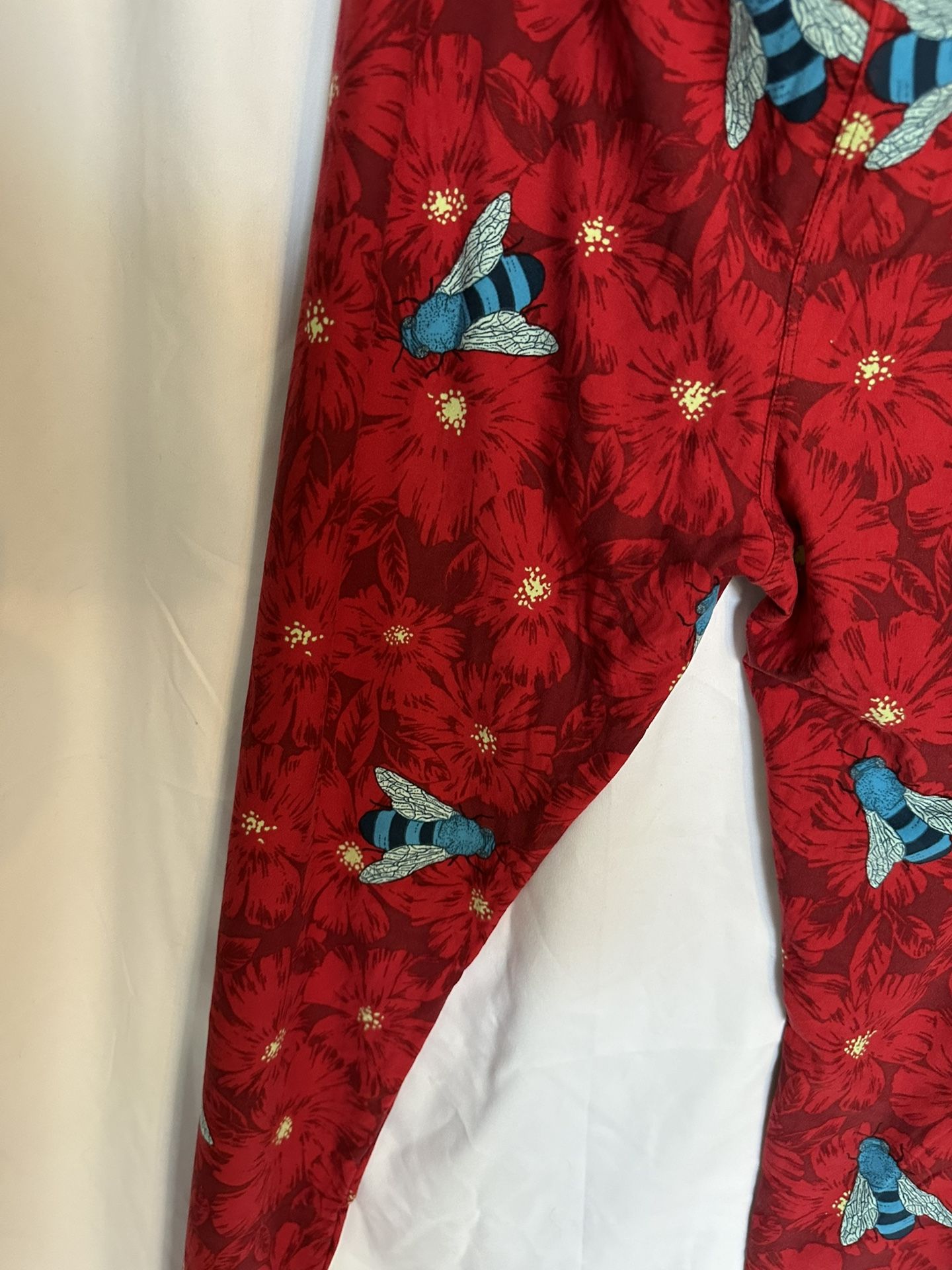 Like new, women’s LuLaRoe leggings, super soft, stretchy and comfortable. Red with flowers and bumble bees! Size TC (tall & curvy)