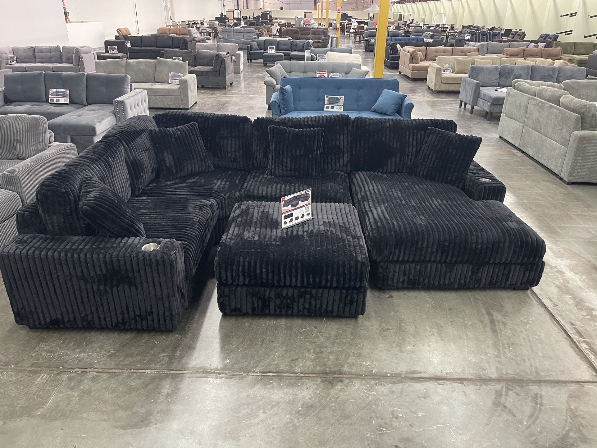 5pc Black Sectional w/ Large Chaise & Ottoman