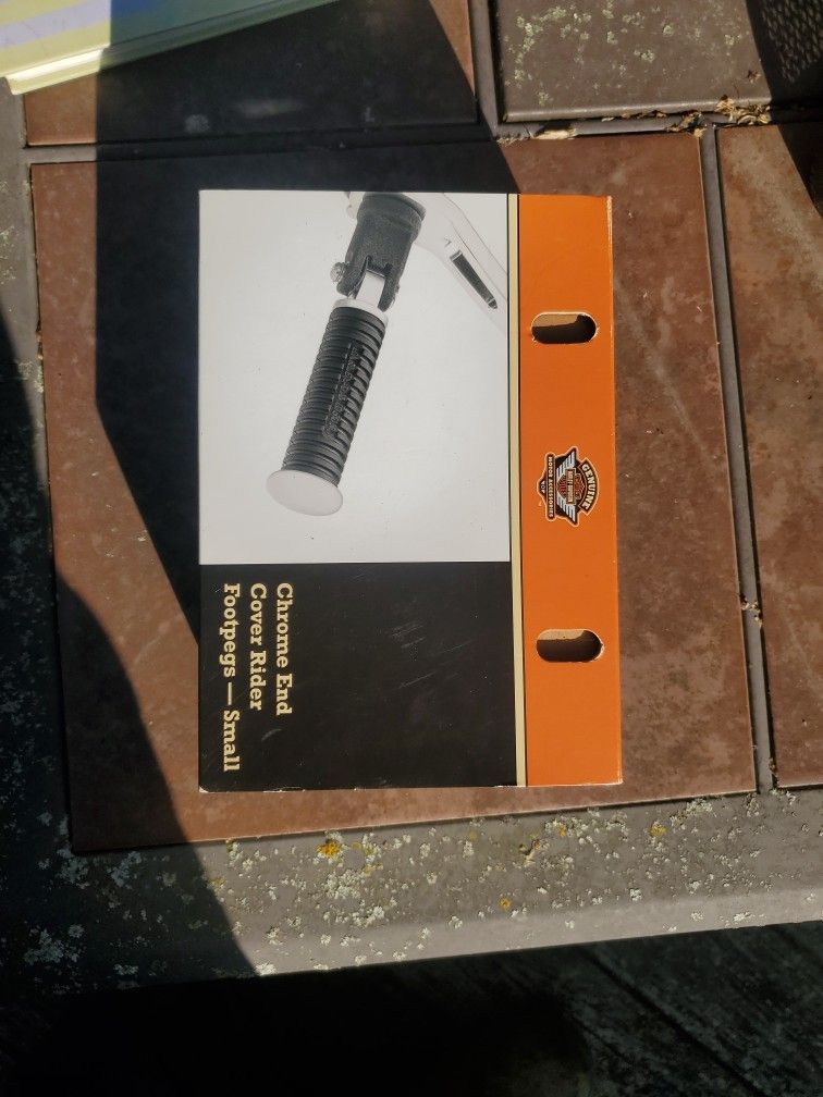 New in box Harley Davidson foot pegs (Chrome end cover Rider footpegs) Bought from Kegals Harley Davidson, rockford Illinois $20