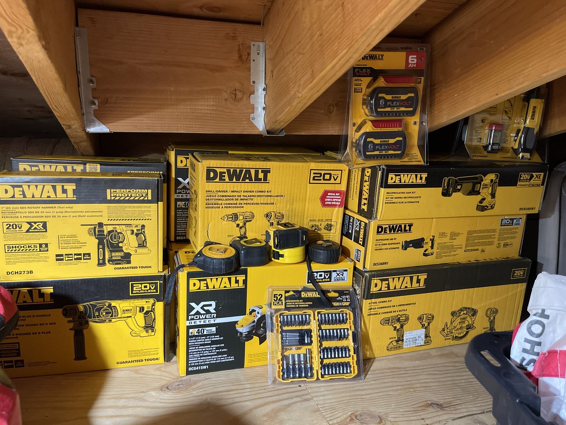 All are BRAND NEW UNOPENED Prices are negotiable. Please contact with specific item you want —> PRICES ARE LISTED BELOW ATOMIC 20V MAX Lithium-Ion Cordless Oscillating Tool Kit with 4.0Ah Battery, Charger and Kit Bag - DCS354Q1 Retail - $220 Sale - $180 DEWALT 20-volt Max Variable Speed Brushless Cordless Reciprocating Saw (Charger Included and Battery Included) - DCS368W1 Retail - $330 Sale - $280 DEWALT 20-volt Max Variable Speed Brushless 1/2-in square Drive Cordless Impact Wrench (Tool Only) DCF911B Retail - $230 Sale - $200 20V MAX XR Cordless Brushless 1/2 in. Mid-Range Impact Wrench Hog Ring Anvil, (1) 20V 4.0Ah Battery and Charger - DCF894HM1 Retail - $280 Sale- $240 8V MAX Cordless 1/4 in. Hex Gyroscopic Screwdriver, (1) 1.0Ah Battery and Charger - DCF682N1 Retail - $90 Sale - $50 Dewalt FLEXVOLT 20V/60V MAX Lithium-Ion 6.0Ah Battery Pack (2 Pack)- DCB606-2 Retail - $270 Sale- $220 DEWALT 5-in 20-volt Max-Amp Paddle Switch Brushless Cordless Angle Grinder (Charger Included and 1-Battery) Retail - $330 Sale- $290 DEWALT XR 20-volt Max 1-in Sds-plus Variable Speed Cordless Rotary Hammer Drill (Tool Only) - DCH273B Retail - $330 Sale - $290 DEWALT XR 20-volt Max-Amp 1-in Sds-plus Variable Speed Cordless Rotary Hammer Drill - DCH133B Retail - $230 Sale - $190 Makita 3-1/2 in. 21° Pneumatic Full Round Head Framing Nailer Retail $240 Sale $175 M18 FUEL 18V Lithium-Ion Brushless Cordless 1/2 in. Hammer Drill/Driver w/One 5.0 Ah and One 2.0 Ah Battery and Charger Retail $400 Sale $300 Ryobi 40V HP Brushless Whisper Series 190 MPH 730 CFM Blower and Backpack Battery w/ (2) 6.0 Ah Batteries & Charger Retail $600 Sale $500