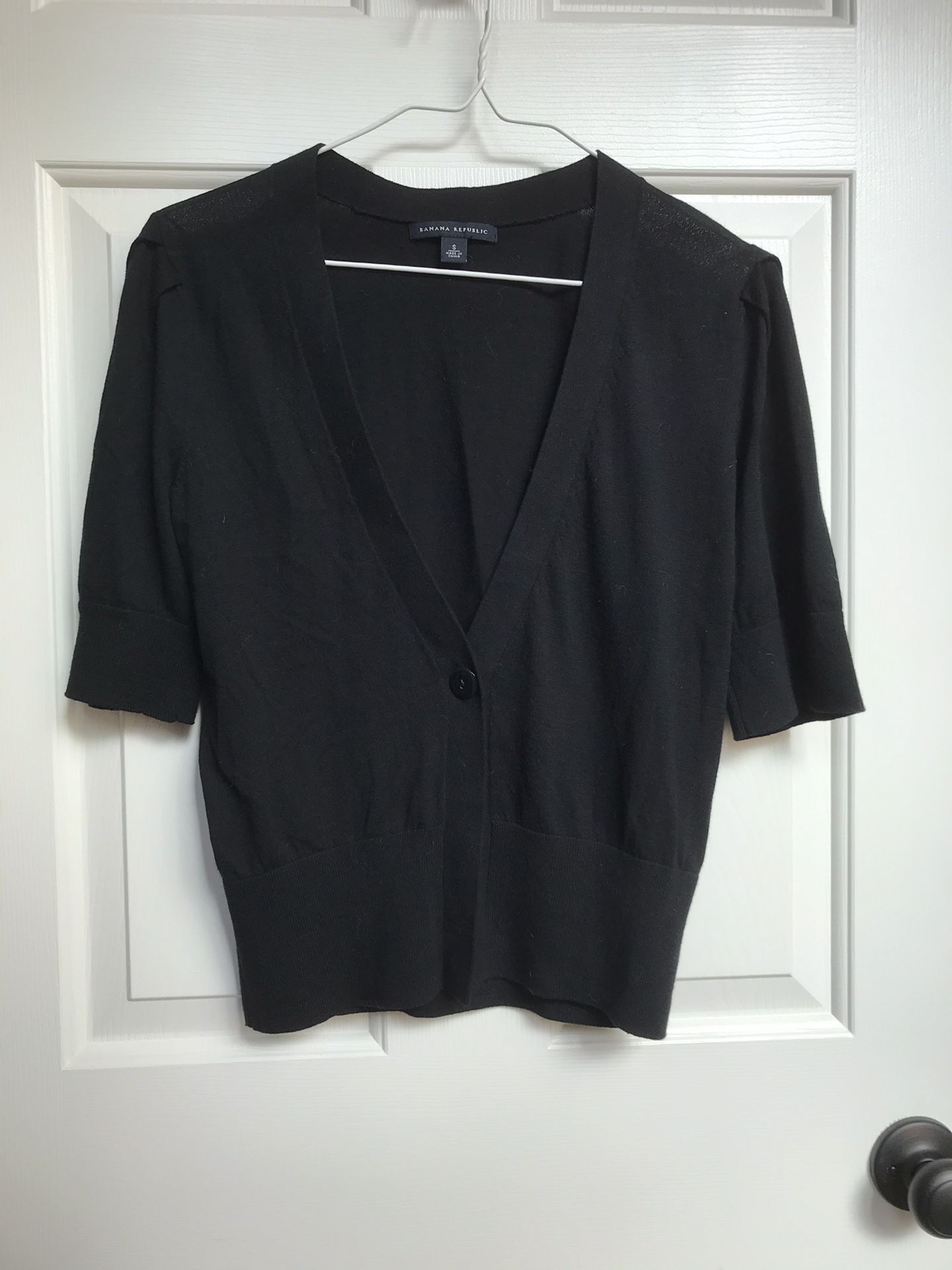 Brand new without tags Banana Republic black one-button v-neck cardigan in a size Small. Cardigan has single button and is 100% cotton. Smoke free home.