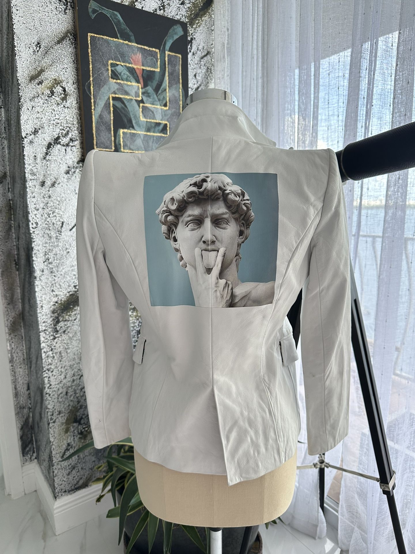 One in the world custom made genuine lamb skin White Leather Jacket Size Small
