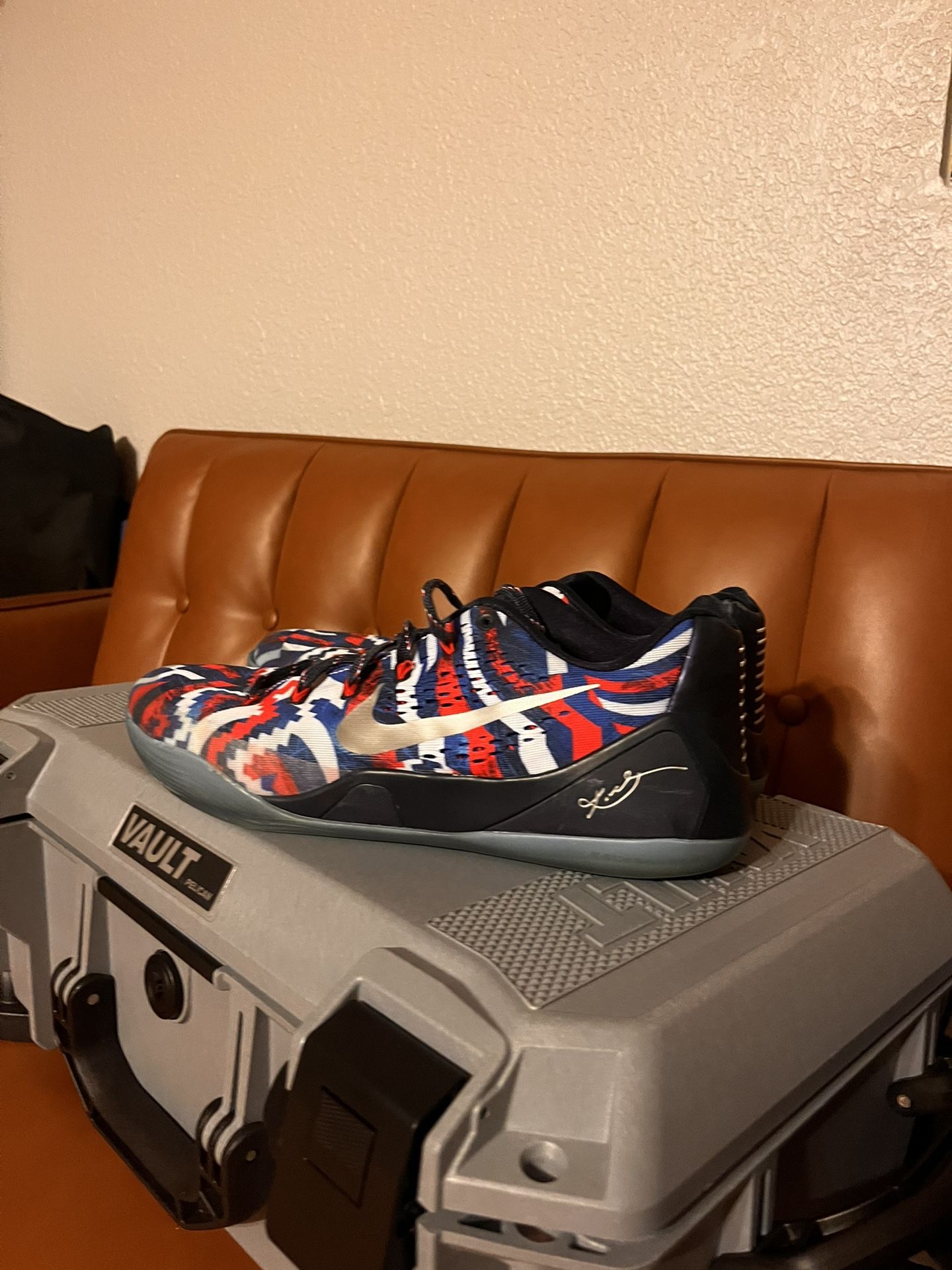 Nike Kobe Independence Day basketball shoes in men’s size 13. These shoes are in excellent condition and were hardly worn. The red, white, and blue camo colorway stands out and is a great collector or on-court pair, just no box.