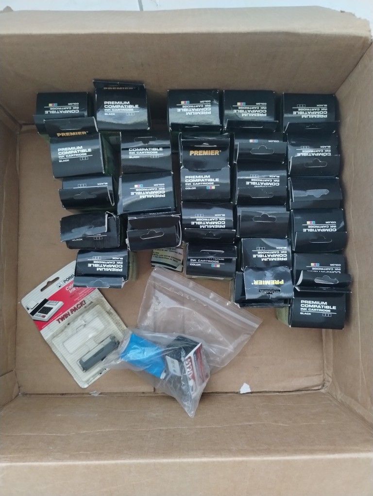 Huge Lot Of 26 Premier Ink Printer Cartridge Black Replacement For HP C9364wn. For use in Photosmart 2610/2720 , I included some other ink cartridges that are loose. Manufactured in 2005 , boxes might show some wear from storage