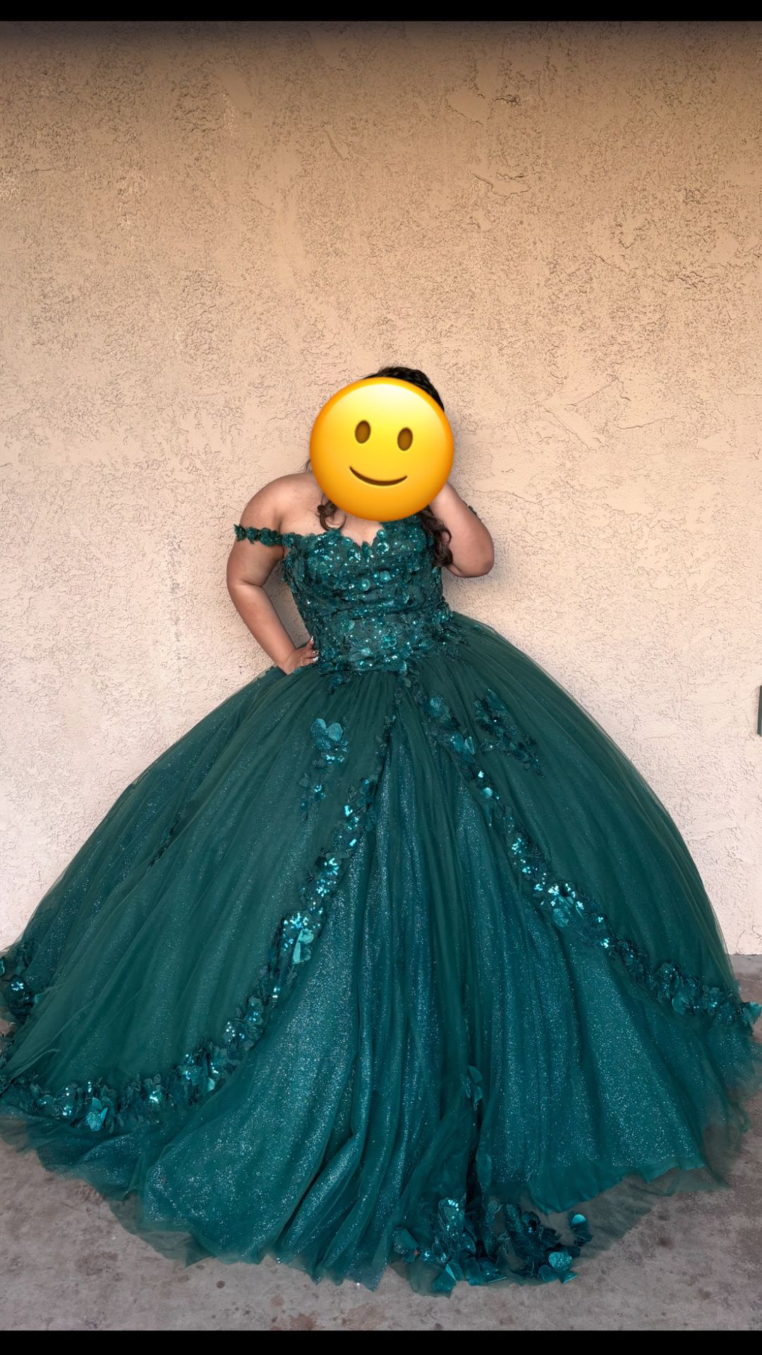 Quince dress, used once Emerald green, off shoulder , corset back Size 16