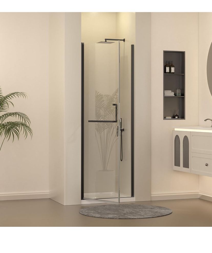 Frameless Pivot Shower Door 27-28" W x 72" H, Pivot Swing Shower Glass Door with 1/4"(6mm) Clear Tempered Glass Shower Door, Easy to Clean Bathroom Shower Door, Matte Black