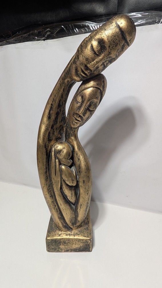 23" Gold Tone Abstract Family Sculpture Modern Plaster Chalkware Statue