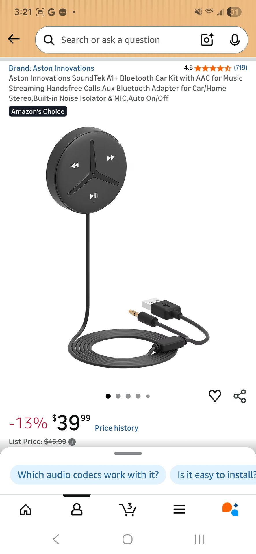 Aston Innovations SoundTek A1+ Bluetooth Car Kit AAC for Music Streaming Handsfree Calls Aux Bluetooth Adapter for Car Home Stereo Built-in Noise Isolator & MIC Auto On/Off This is the best bluetooth device to use if you have an older car that has an auxiliary jack and power port for USB The speaker works really well if someone calls you. They can hear you well unlike other cheap China brands. I know because I uses it and every one I spoke to heard me over the phone well on this bluetooth connection. The audio quality is superb as well. Will work well on iPhone and galaxy devices. Still works great and I had only used it less than a year.