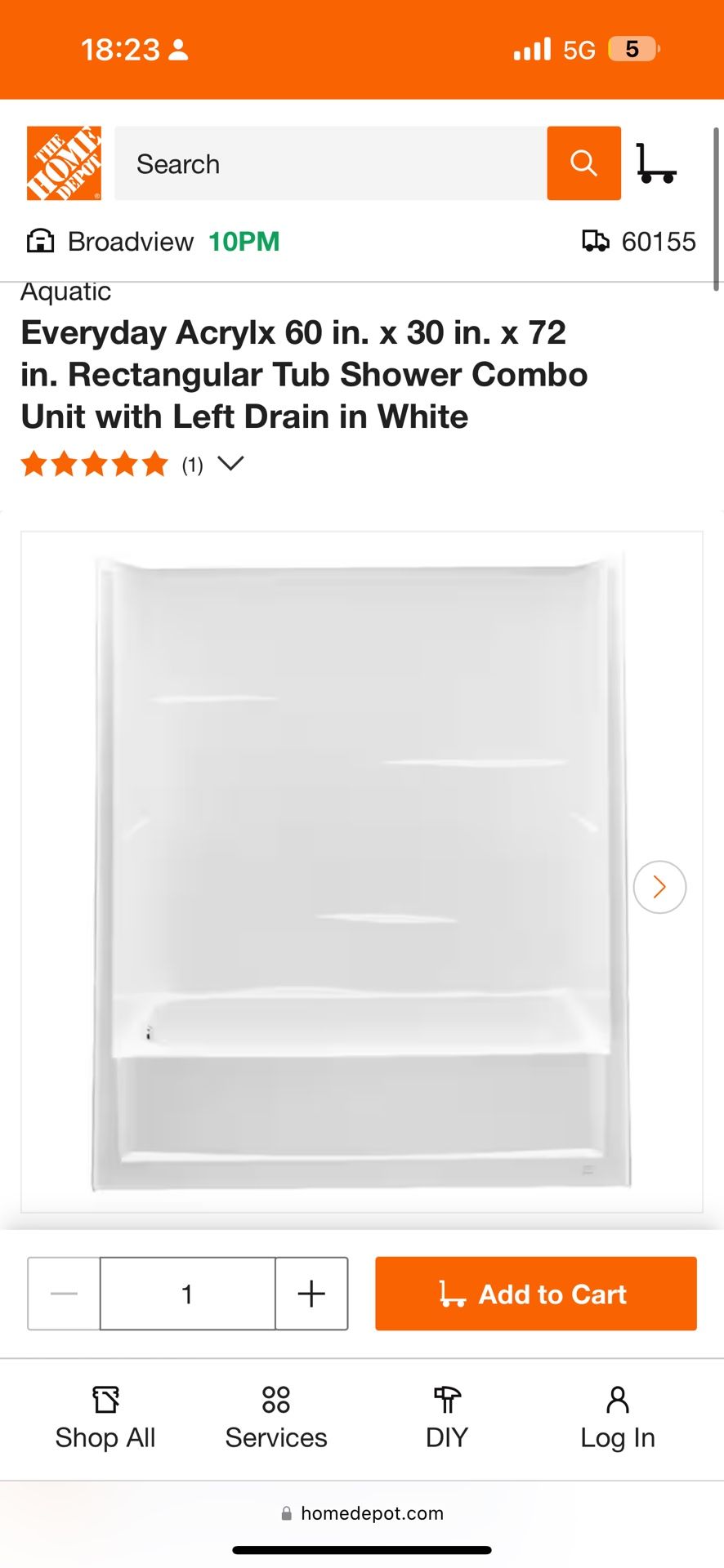 Left drain Tub Shower Combo Unit