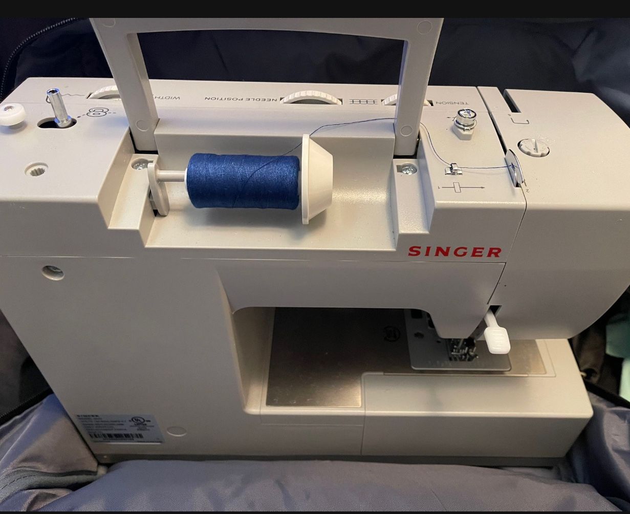 Only used twice…I don’t need it. Comes with a variety of different color cotton thread and bobbins to match, fabric chalk, extra needles, sewing clips and sewing pins with cushion. Also comes with purple carrying case and machine cover.