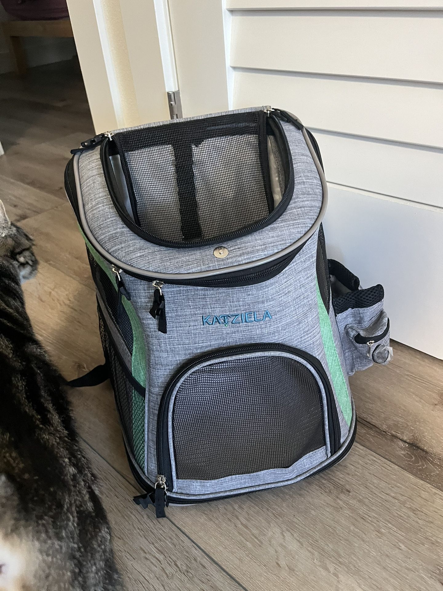 Cat back pack used but great condition. We purchased from someone else but it was too small for our guy! Super comfy and easy to use