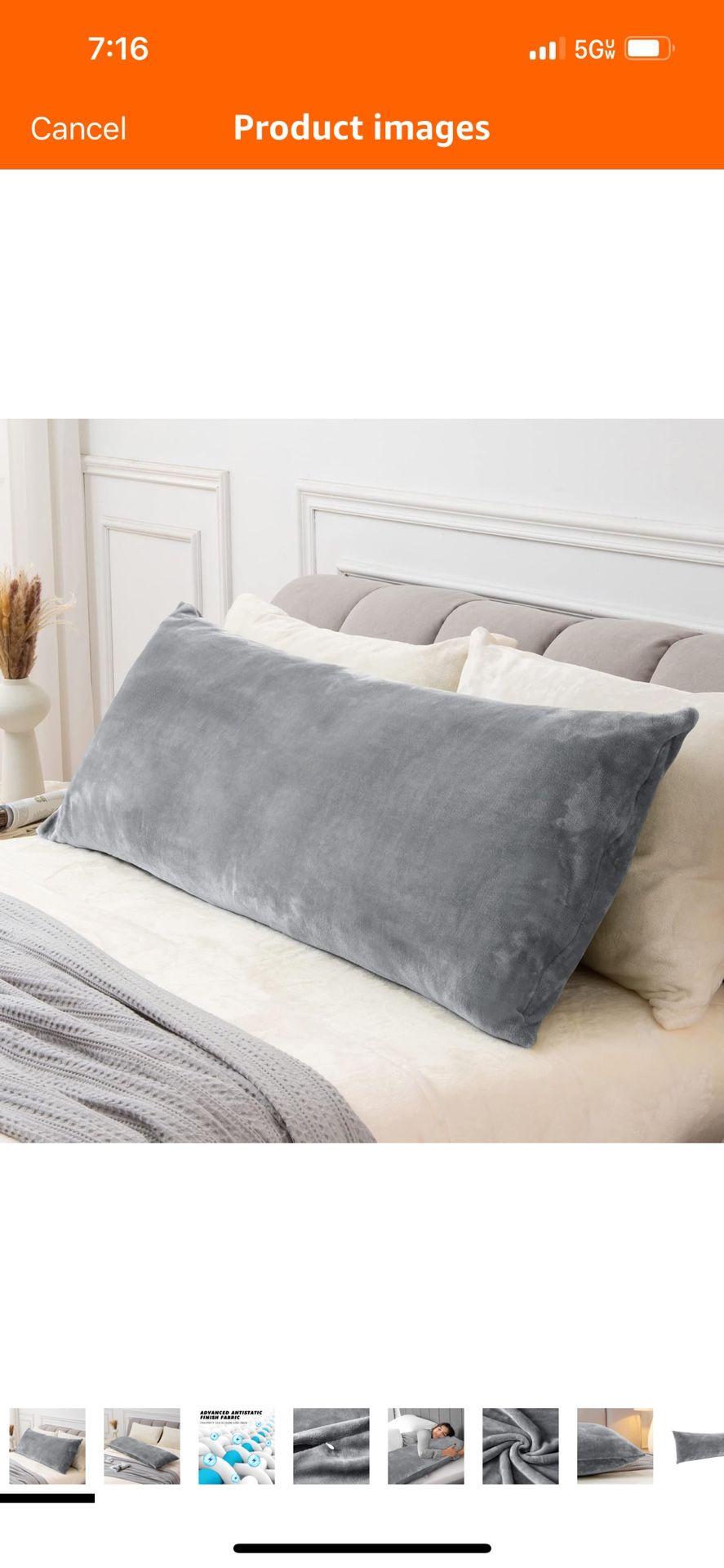 Long Body Pillow And Gray Pillowcase