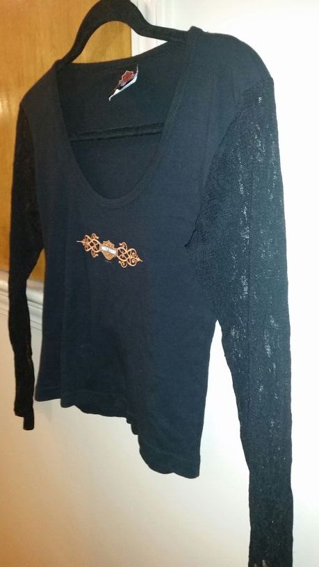 Hardly worn like new size small black with lace material on arms