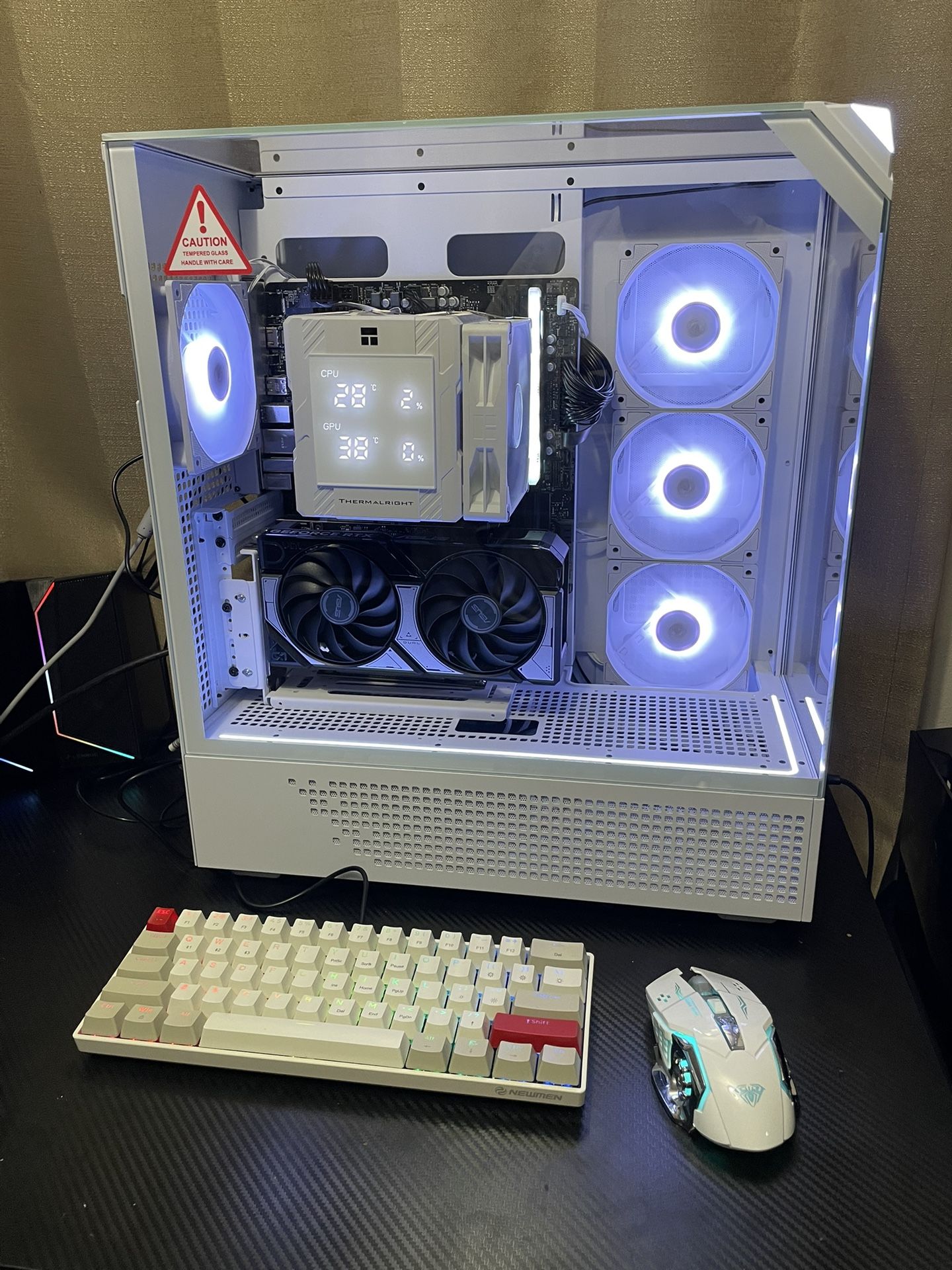 Selling a beautiful strong gaming pc! it is working perfect and ready to play any game you want! It comes with a free gaming keyboard and mouse new in box to get you started! B650m cxr 2.0 motherboard Ryzen 7 8700f cpu 16 gb ddr5 ram 5060 graphics card 1tb ssd storage Wifi Gaming computer office gamer set up pc ddr5 am5 5060 gpu mobo nvme
