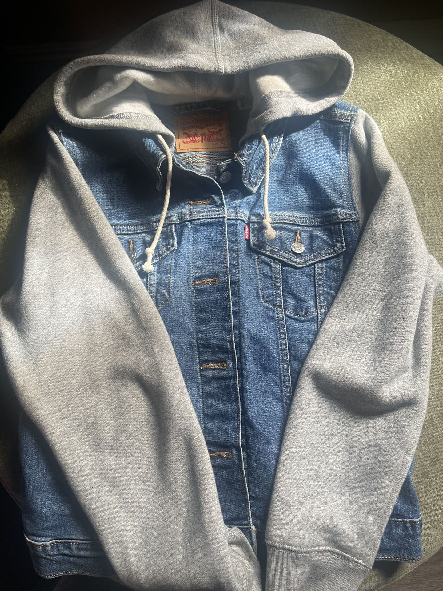 Women Levi’s trucker style jean jackets size XL color blue denim and black only worn once $50 each