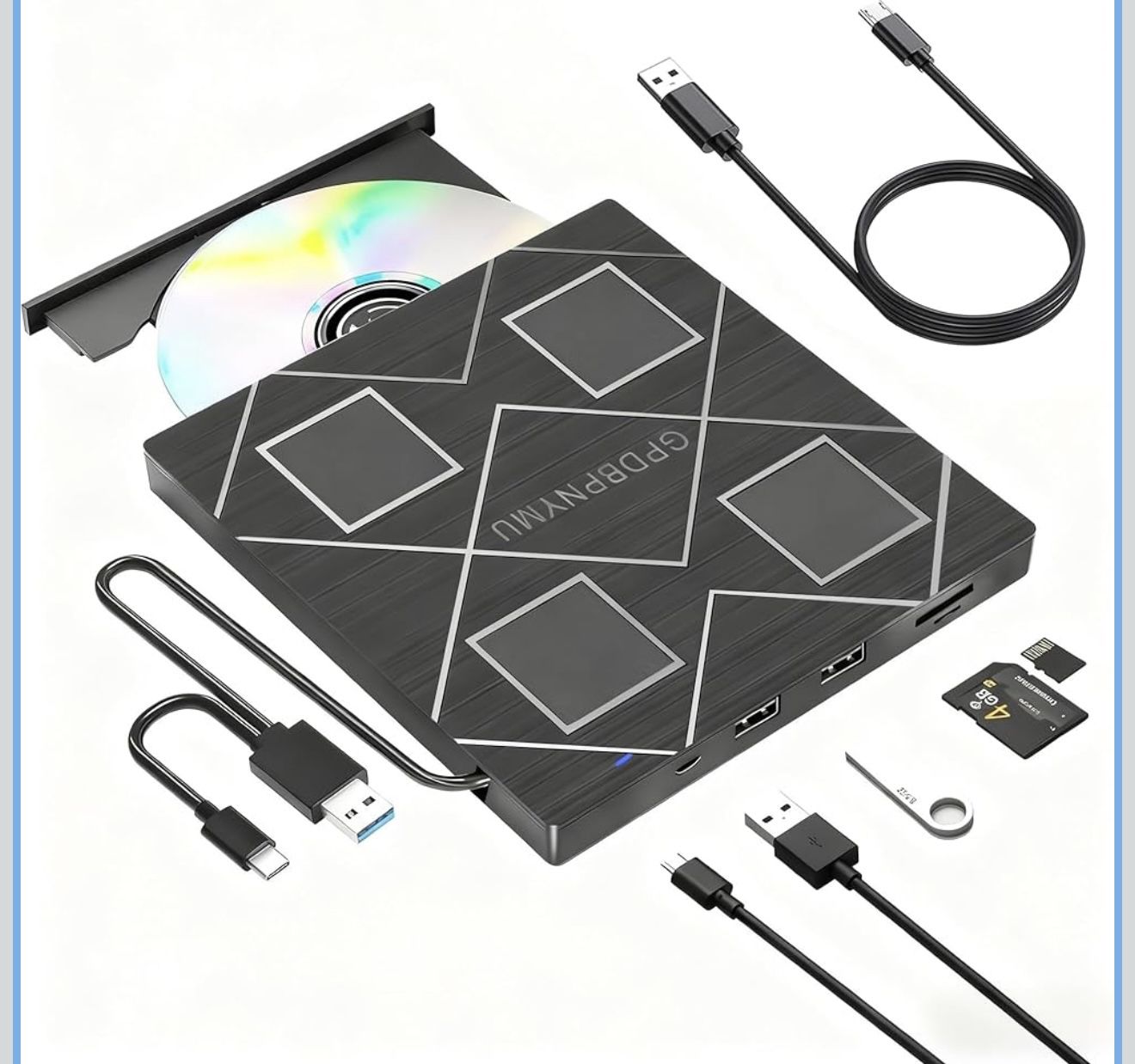 5-in-1 Extemal CD/DVD Drive for Laptop,USB 3.0 & Type-C Portable CD/DvD Rw Burner with SD/TF Card Reader &DVD-ROM Rewritable Player,Compatible with La