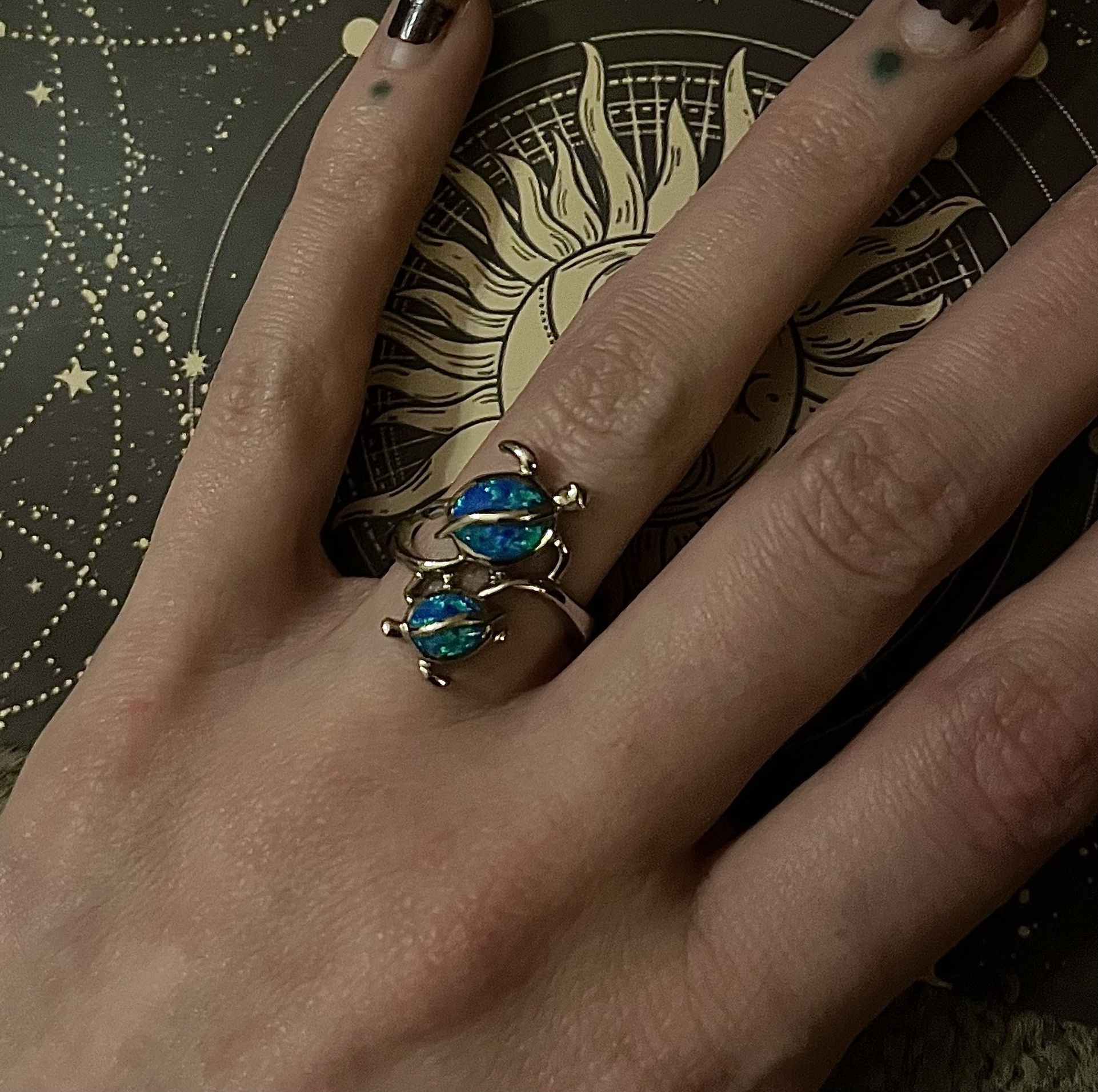 Opal & Sterling Silver 925 Hawaiian Mother Baby Turtle Ring