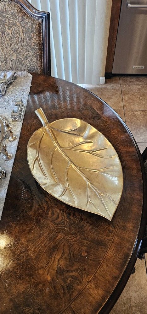Vintage Solid Brass Leaf Tray Decorative 23" / MCM / Hollywood Recency / Decor / Antique / Unique / Living Room / Great Gift / Collectible / Collector