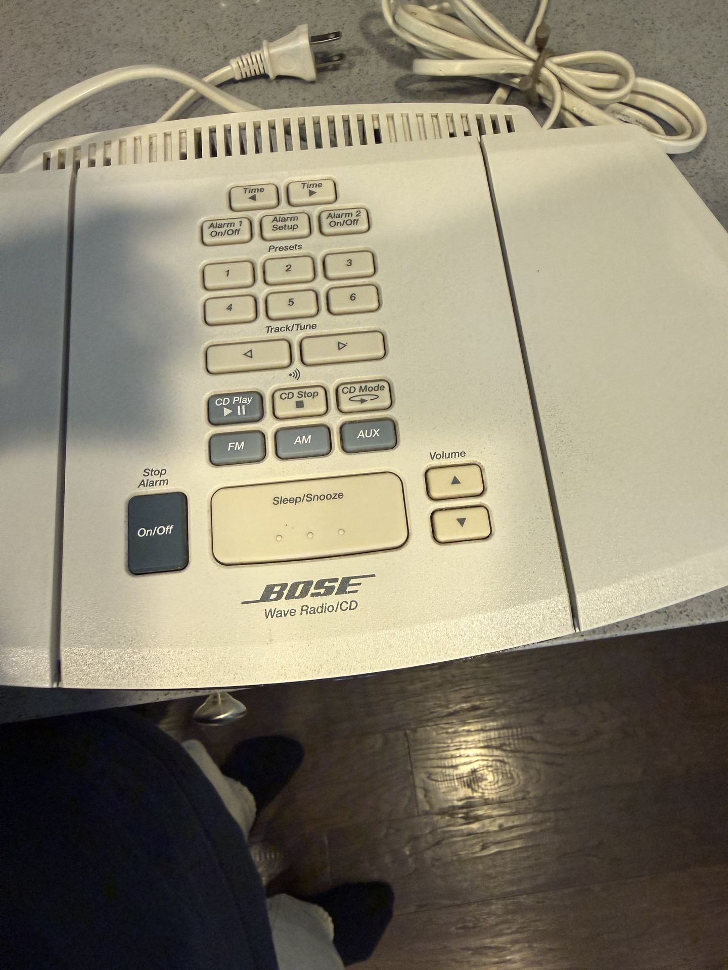 The Bose Wave Radio CD Player Stereo Model AWRC-1P in white is a versatile home audio device that offers a combination of CD playback, MP3 support, and AM/FM radio tuning. With features like a headphone jack, line-in jack, and line-out jack, this compact stereo system provides flexibility for various listening options. The unit has a sleek design with dimensions of 14 inches in length, 8 inches in width, and 4.5 inches in height. Known for its high-quality sound and durability, this Bose model is a reliable choice for those looking to enhance their home audio experience.