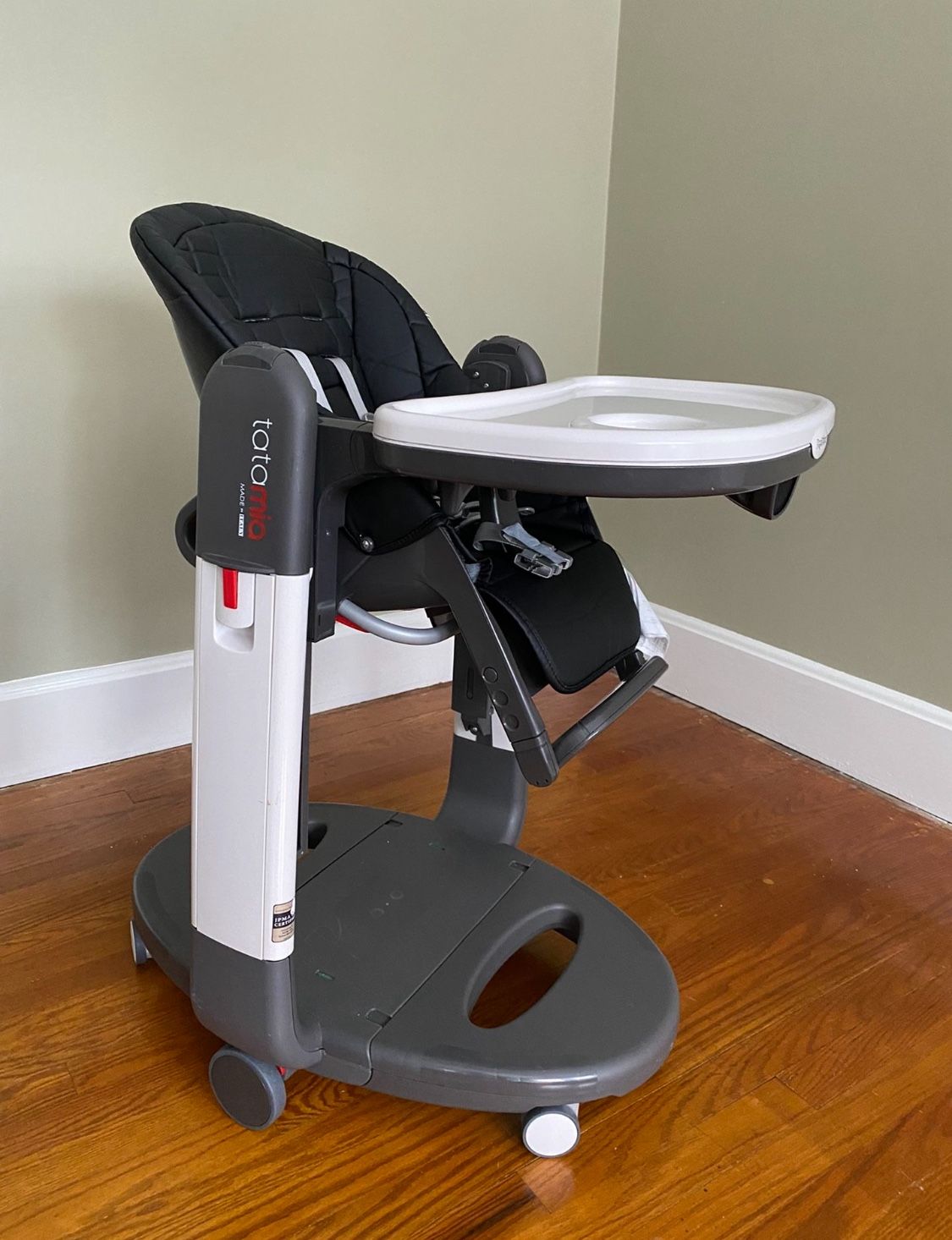 Peg Perego TATAMIA®️, a 3-in-1 high chair that easily transforms into a recliner and swing. This gently used unit is in excellent condition and meticulously cleaned, ensuring safety and comfort for your little one. Key Features:  3-in-1 Function: Recliner, swing, and high chair  9 Height Adjustments: Grows with your baby  3 Recline Positions: For added comfort  Compact Design: Folds easily for storage  Safety First: Stop&Go automatic safety lock and adjustable 5-point harness  Easy to Clean: Eco leather upholstery and dishwasher-safe double tray