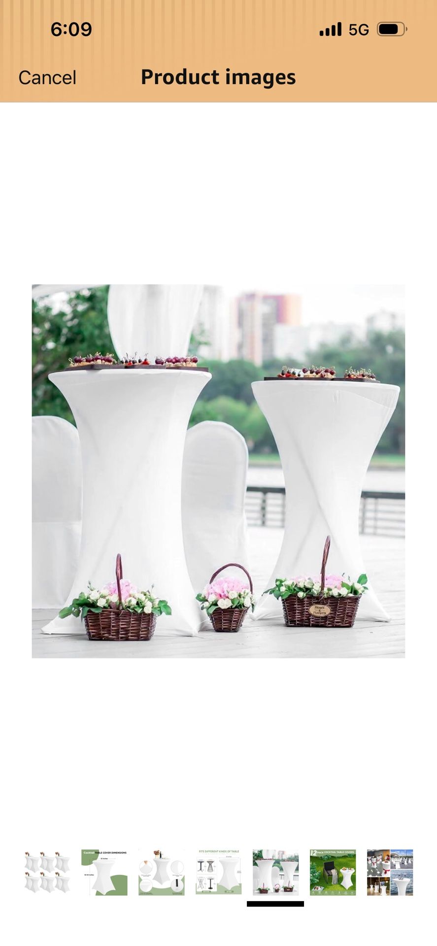 12 Pack 32x43 Inch Spandex Cocktail Table Covers, Fitted High Top Table Covers for Round Tables, Square Corners Cocktail Table Tablecloth for Wedding Bar Cocktail Party Banquet Birthday (12pc White)