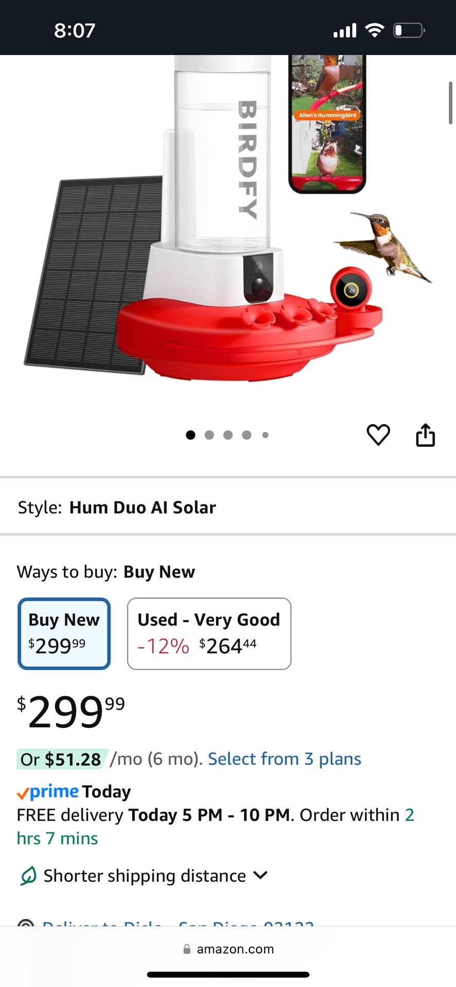 New birdfy Hummingbird Smart Feeder With Solar Panel