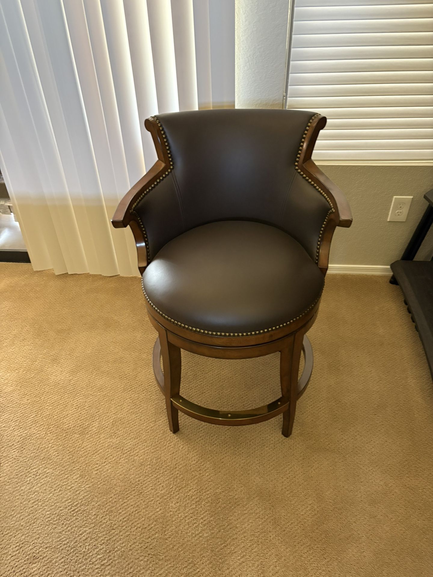 PURCHASED NEW THROUGH A WAYFAIR OUTLET . IT HAS A SMALL TOPO CRACK SHOWN IN THE PICTURE. DOES NOT AFFECT THE INTEGRITY OF THE CHAIR OR WAYFAIR WOULD’NT SELL IT. IT IS BEAUTIFUL.