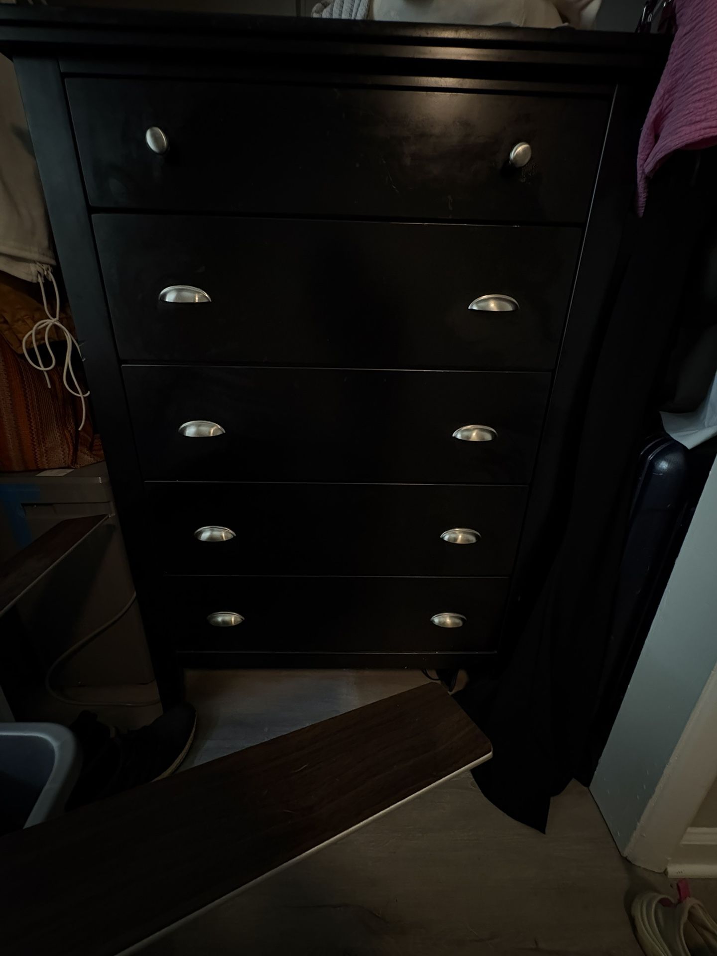 Black dresser that is about 4 1/2 feet tall.
