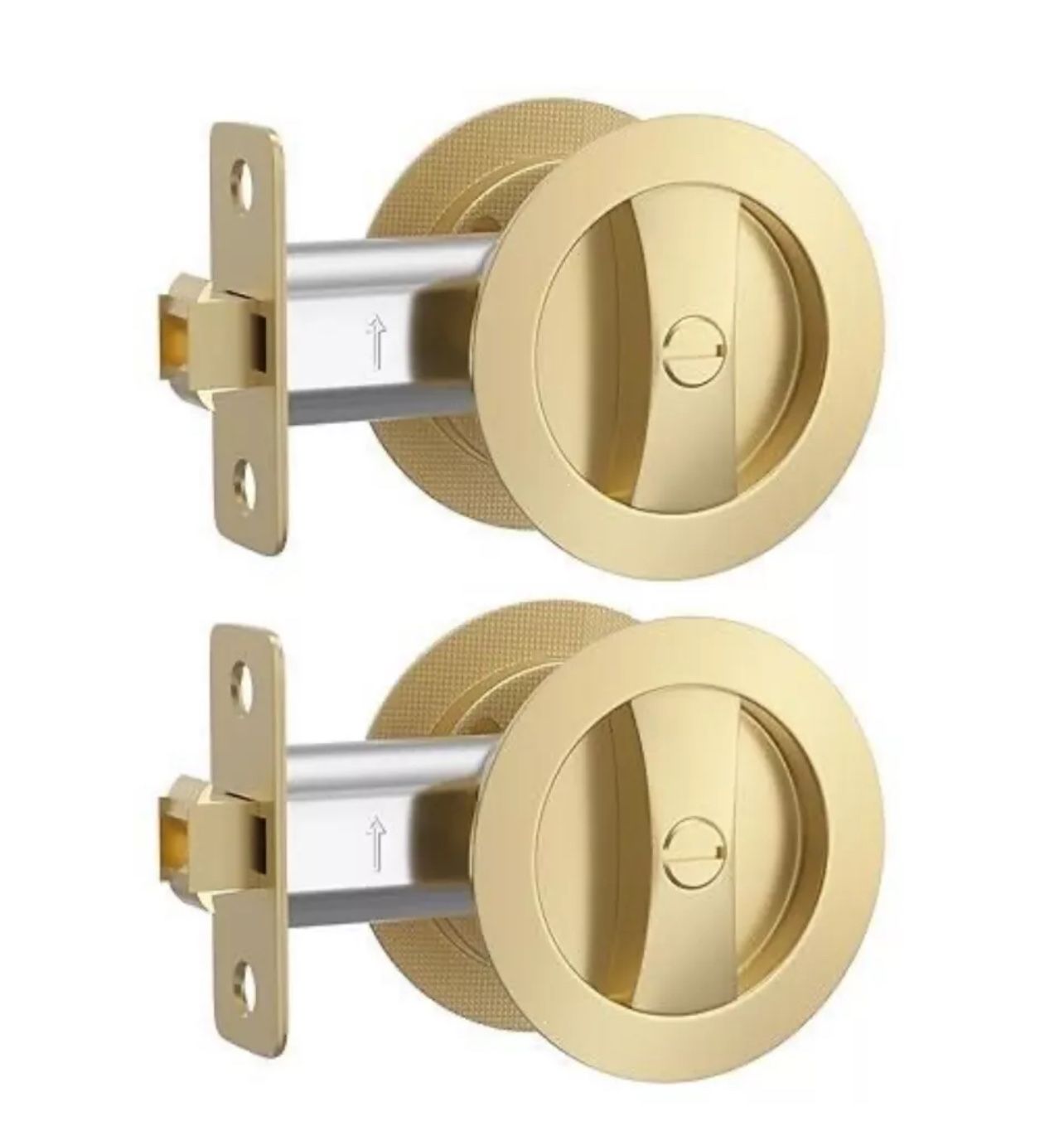 Haidms Brushed Gold Pocket Door Lock, Privacy Pocket Door Hardware, Round Brass