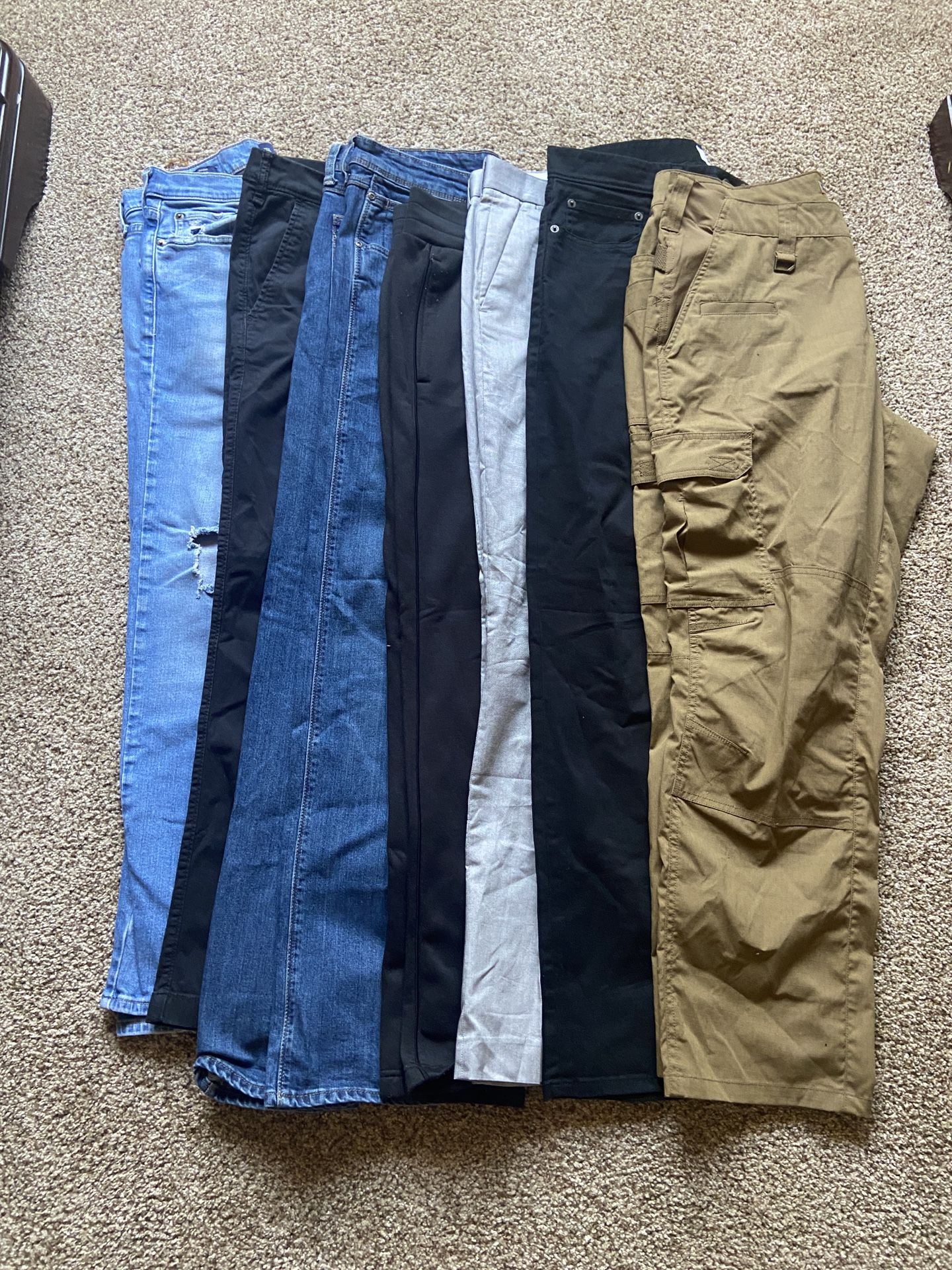 Seven pairs of jeans, different sizes brands like 511 Goodfellow express Adidas Wrangler, and Hollister for a good price, not selling individually, only selling all of them