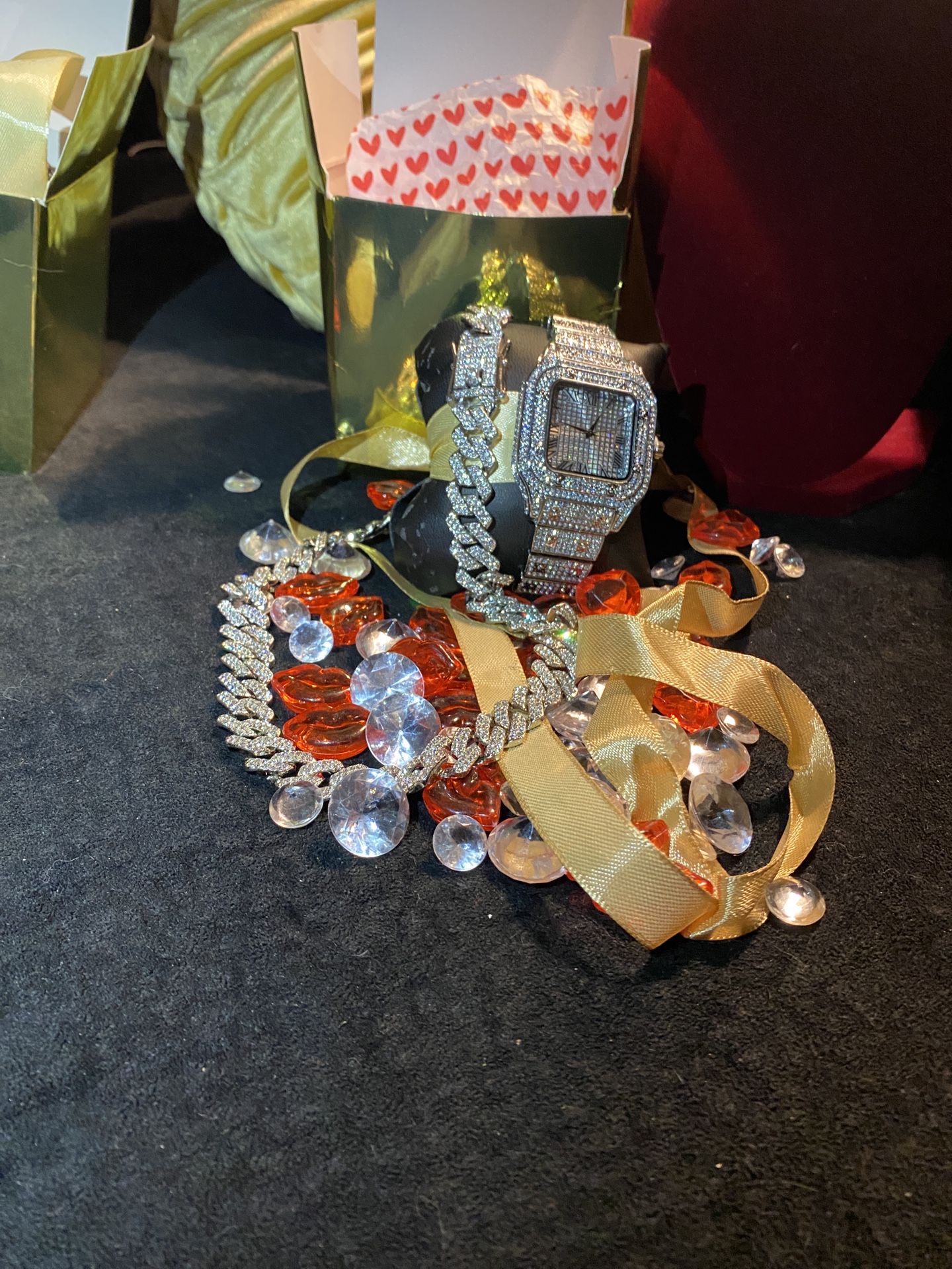 Happy Valentine’s Day fit for a king or queen. Golden Gift Box(s) included Real Gold Plated, dipped in Real Gold 4x’s and 2x’s clearcoat shines protection. Stainless Steel base. Dipped Coated Real Gold/Silver, Hypoallergenic, no green skin or irritation. A must-have for any jewelry collection 🇮🇹… Perfect for your budget. "Look like money without overspending" Godzillion Lab Diamonds. No, they do not pass on all diamond testers. However, they do look identical to Natural Earth diamonds because they are real 💎 diamonds. Moreover, they don’t cost a ton, because they’ve been produced in the lab. These are budget friendly but they do look expensive. 🤩Sure you may find some pieces that look similar on pictures, but obviously you may find some things that look like Gucci or Prada but that doesn't mean that it's the same manufacturer… lol, so don't be silly ... We’ve been selling brilliant pieces for 3+ years. ✨Dipped Coated Real Gold/Silver, ✨Clear Coating Shine Protection, ✨ Hypoallergenic, no green skin or irritation ✨
