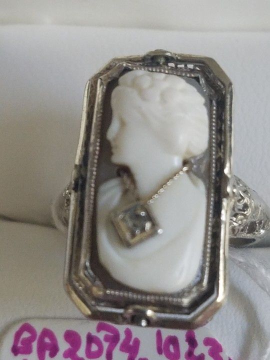 14k White Gold Antique Flip Filigree Cameo Diamond/Onyx Ring Size 6.5