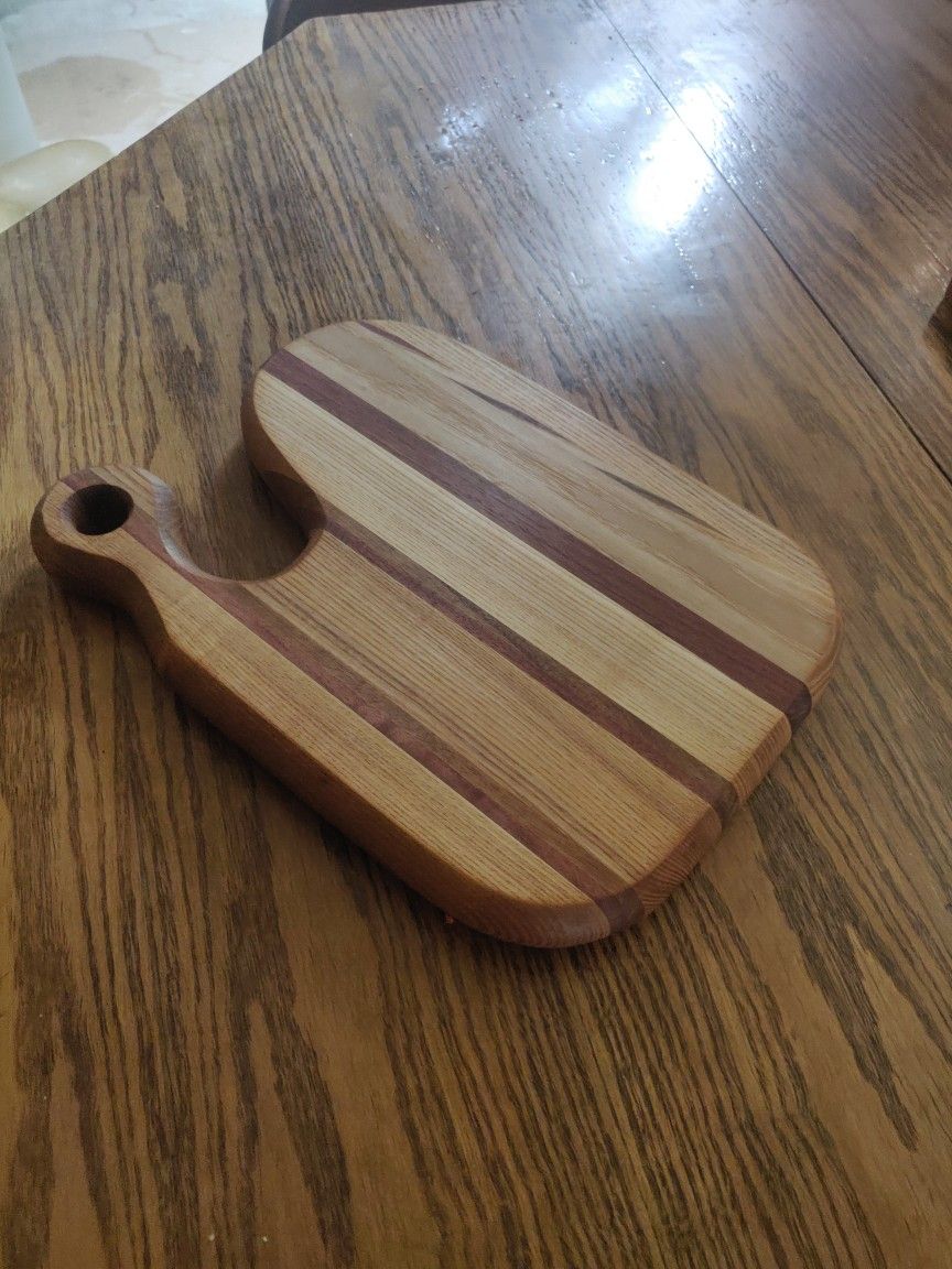 I have a bunch of custom made cutting boards. All hardwood. Maple, cherry, walnut, teak, birch, etc. Let me know what you're looking for. If I don't have it, I'll make it! Make great gifts!