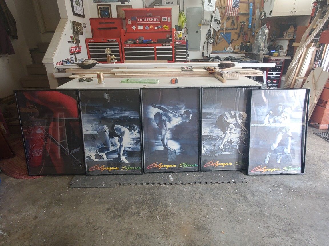 I have 5 sports posters good for an excersize room or other. All 5 free. Come and get them and they are yours. NOTE: THESE HAVE BEEN IN STORAGE SO THE FRAMES ARE DIRTY AND WILL NEED TO BE CLEANED. POSTERS THEMSELVES ARE FINE. NOTHING A RAG AND WINDEX WONT FIX.