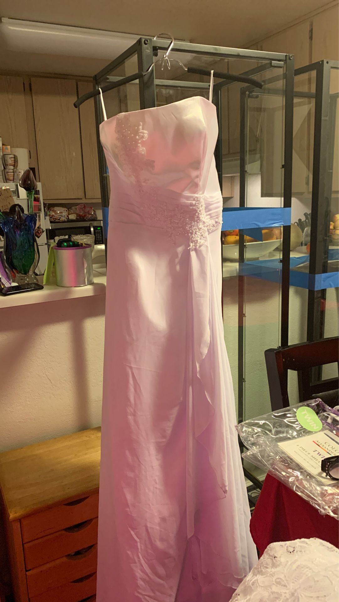 Size 6 simple wedding dress strapless satin beaded dress