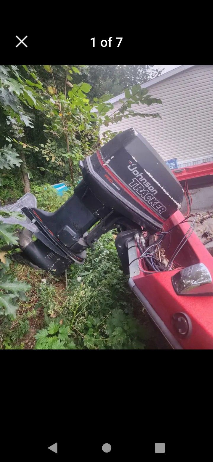 I JUST WANT TO SAY I KNOW WHAT I HAVE I GREW UP ON BOATS. PLEASE READ!!!! I have an 87 bass tracker 1800tf is has a 110hp johnson evenrude (no longer in production/manufacturing)i also have over $3000 in parts for it. I also have the key. It does float.This was to be a winter project however my wife recently has had some health issue arise. Everything your see in the photos is what is included i also have the owner manual. Havnt gotten far with making it look new. It is a tournament style bass boat. THIS BOAT WAS APPRAISED 3 WEEKS AGO AT $6800 AS IT SITS BY MY INSURANCE ADJUST/APRRAISER. Any question feel free to ask. NO SCAMS. Runs and floats. Will need to get a rebuild or salvage title.