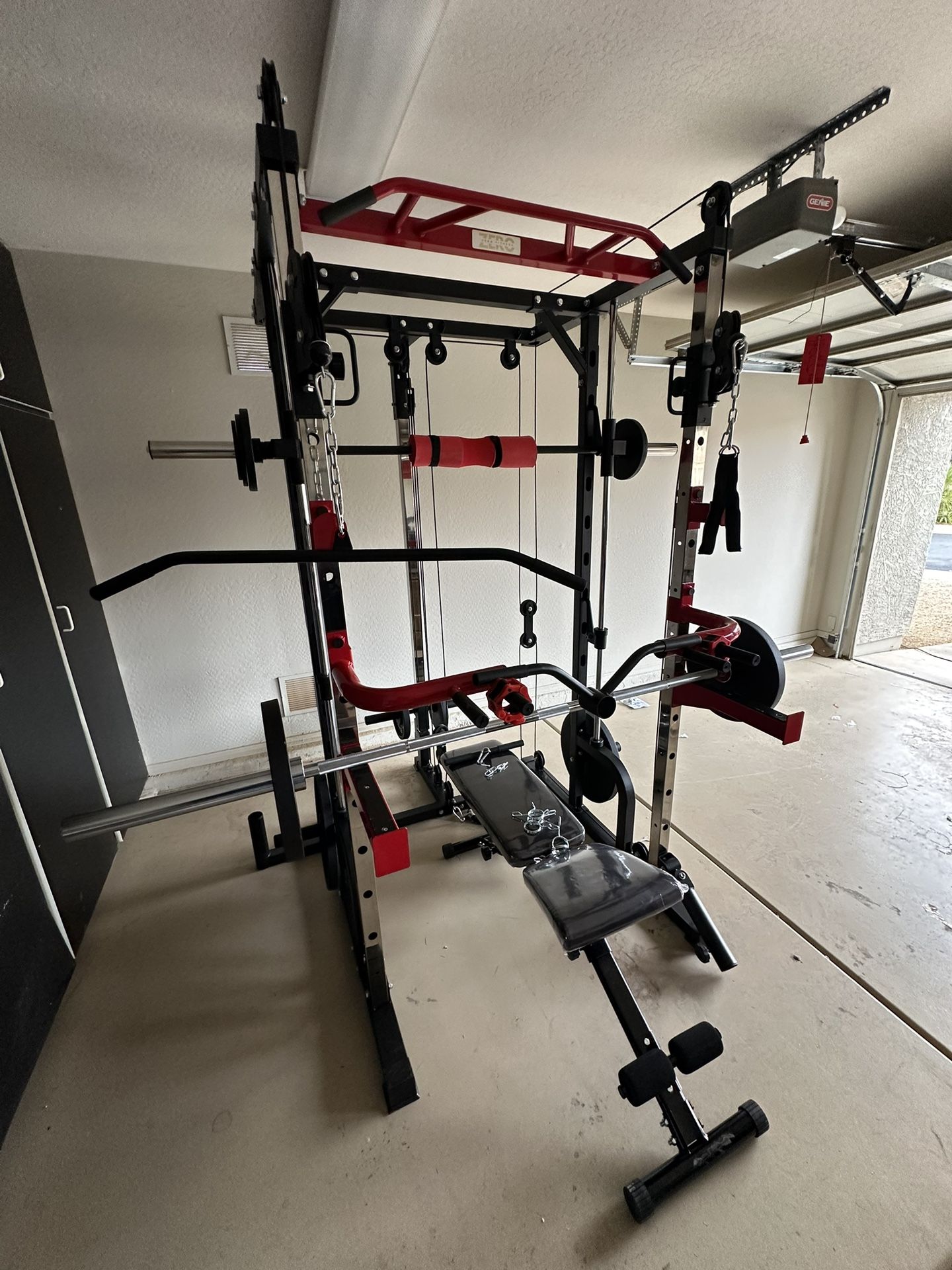 Smith Machine 100 Bundle 🏋️ New In Box! FREE DELIVERY AT FULL PRICE!Click Profile For More Gym Listings! Only Account! Cash / Credit Cards / Finance Available! WARRANTY INCLUDED This bundle includes a pulley system with two adjustable pulleys from top to bottom and one at the bottom, a bicep curl/row bar, two handles, a pull-up bar, a landmine, a landmine attachment, a T-bar row, a straight bar, a 25lbs fixed Smith machine bar, and a lat bar. Also included is a complete cast iron weight set with a pair of each of the following weights: 45lbs, 35lbs, 25lbs, 10lbs, 5lbs, 2.5lbs, and a 45lbs advanced Olympic bar. An adjustable bench is also included in the package. Please note that assembly is not included, but can be arranged for an additional fee of $299. This includes assembly of the Smith machine, setting up weights on the machine, and removal of all empty boxes. Machine specifications include a total weight of 300lbs, a maximum plate load of 450lbs, a multi-grip pull-up bar with rubber and a ring for resistance band-assisted pull-ups, commercial sealed bearing pulleys, and multiple post plate storage to keep weights off the floor. The assembled dimensions are 70″L x 72″W x 92″H, and please note that the attached barbell is included in the width. Upgrades or Add Ons •Free Switch to 230lb Bumpers Plates 45s/35s/25s/10s •$40 3ft by 3ft Rubber Mats •$90 4ft 20lbs Curl OLYMPIC WEIGHTS GYM EQUIPMENT OLYMPIC STANDARD WEIGHT SLED PUSH SLED WEIGHTS WEIGHT PESAS SQUAT RACK POWER CAGE SMITH MACHINE BENCH PRESS INCLINE DECLINE BARBELL BAR HEX BAR BUMPER PLATES ADJUSTABLE BENCH FLAT BENCH BENCH DUMBBELLS DUMBELL ADJUSTABLE DUMBBELLS KETTLE BELLS DIP STATION PULL UPS PULL DOWN BATTLE ROPE BOWFLEX POWERTEC POWERBLOCKS HOIST BODY SOLID ROGUE FITNESS EXERCISE