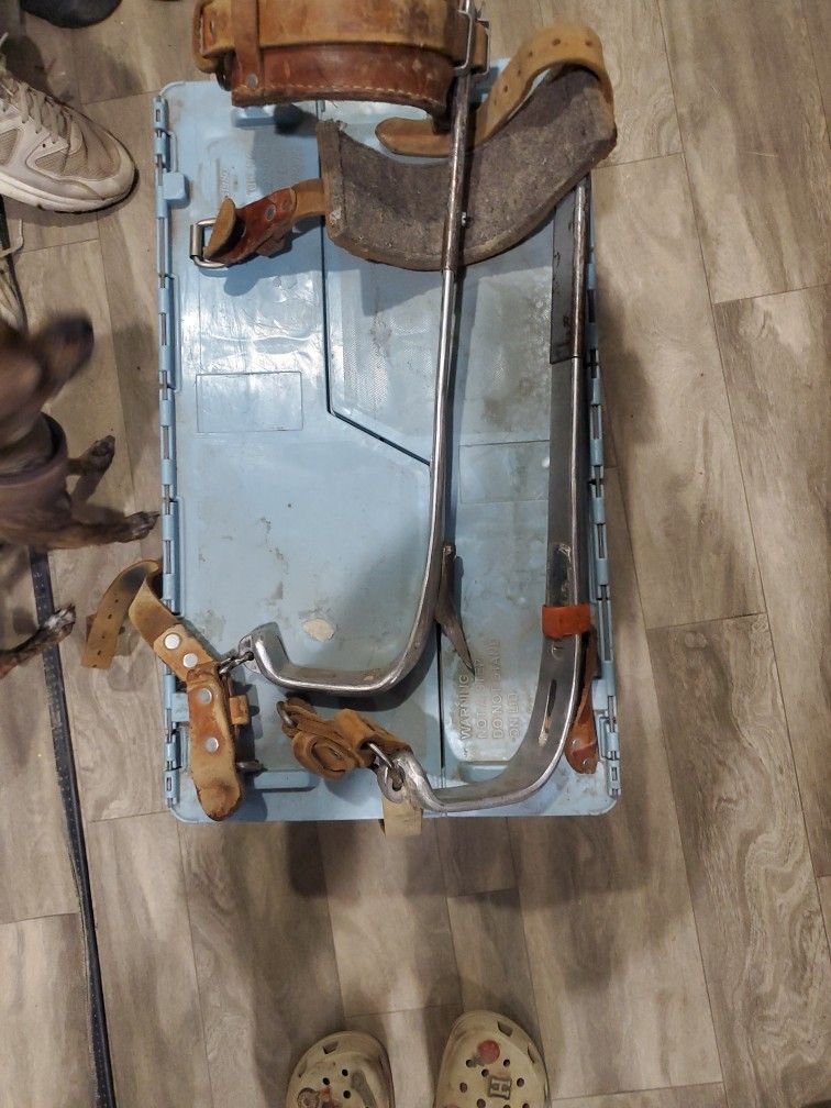 Lineman/tree claiming spikes. One strap missing but easy fix