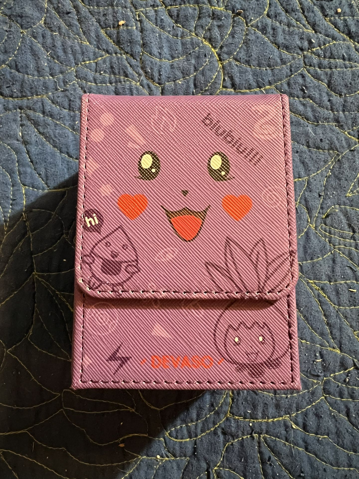- Devaso Pokémon themed (I say it now because it’s not any I know, or it’s Devaso’s portrayal of it. I think it’s cute and beautifully done, but it’s not any Pokémon I know of). - Devaso also claims this to be genuine leather. - Storage space is covered with velvet. - Storage space is smooth in order to properly protect cards. - Flippable lid is magnetic. - Cards not included. But!!! If you would like to bundle and save some extra 💵, check out our store for more cards, games and collectibles 👍. We can very easily make you your own post with your own desired items, simplifying the sale, saving you some money (also on shipping), and itemizing a proper receipt 😊. - We ship with care!