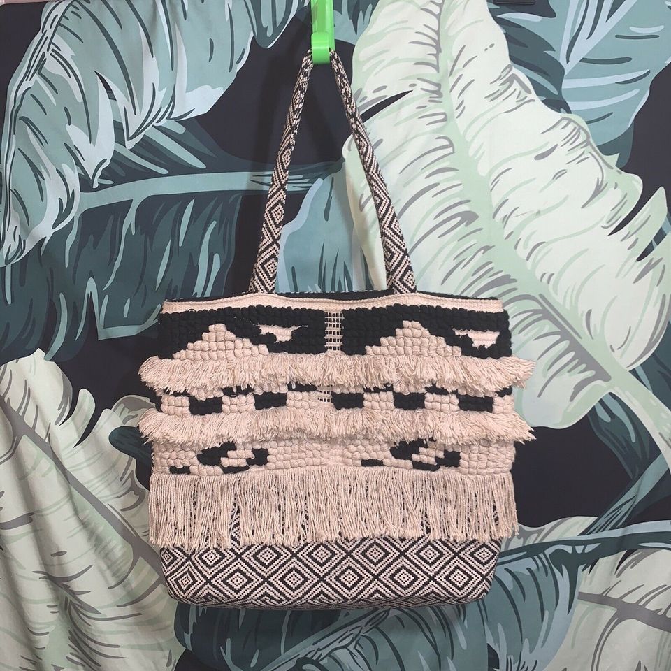 World Market Boho Bohemian Macrame Fringe Tapestry Large Shoulder Tote Bag