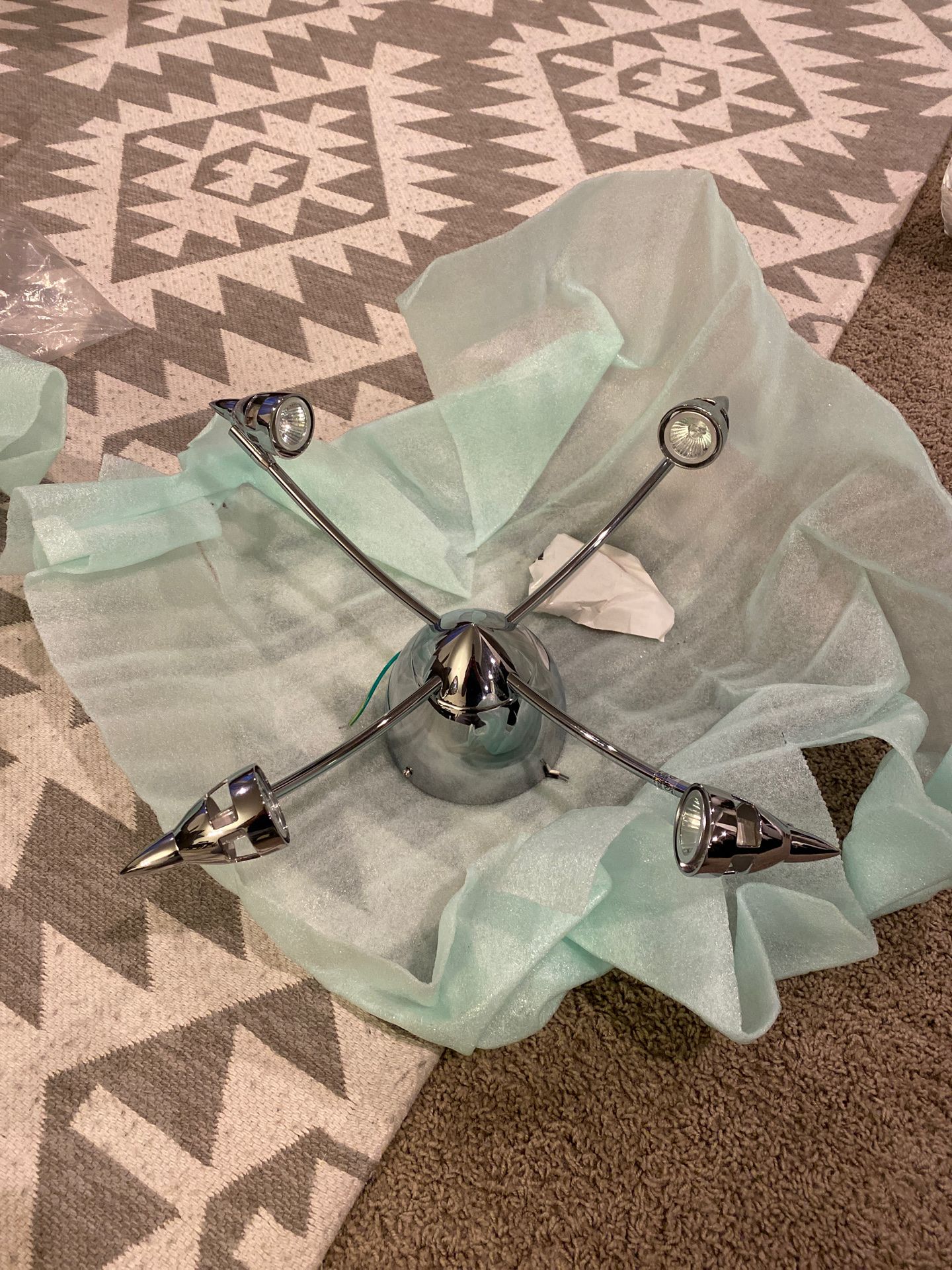 New lamp never has use for it. Found cleaning out garage. Beautiful and bright!
