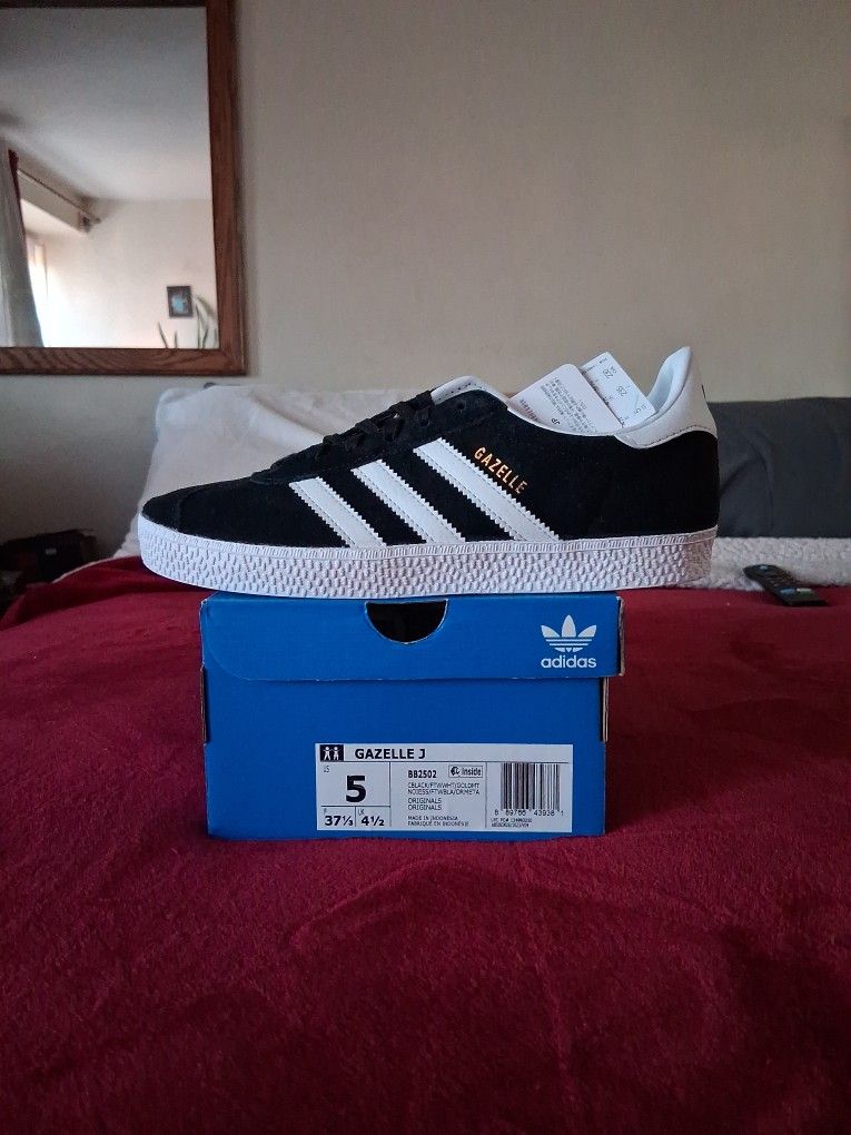 Adidas Gazelle J Black, White edition. Sizes 5Y & 6Y $60.00 each. Brand new pick up only.
