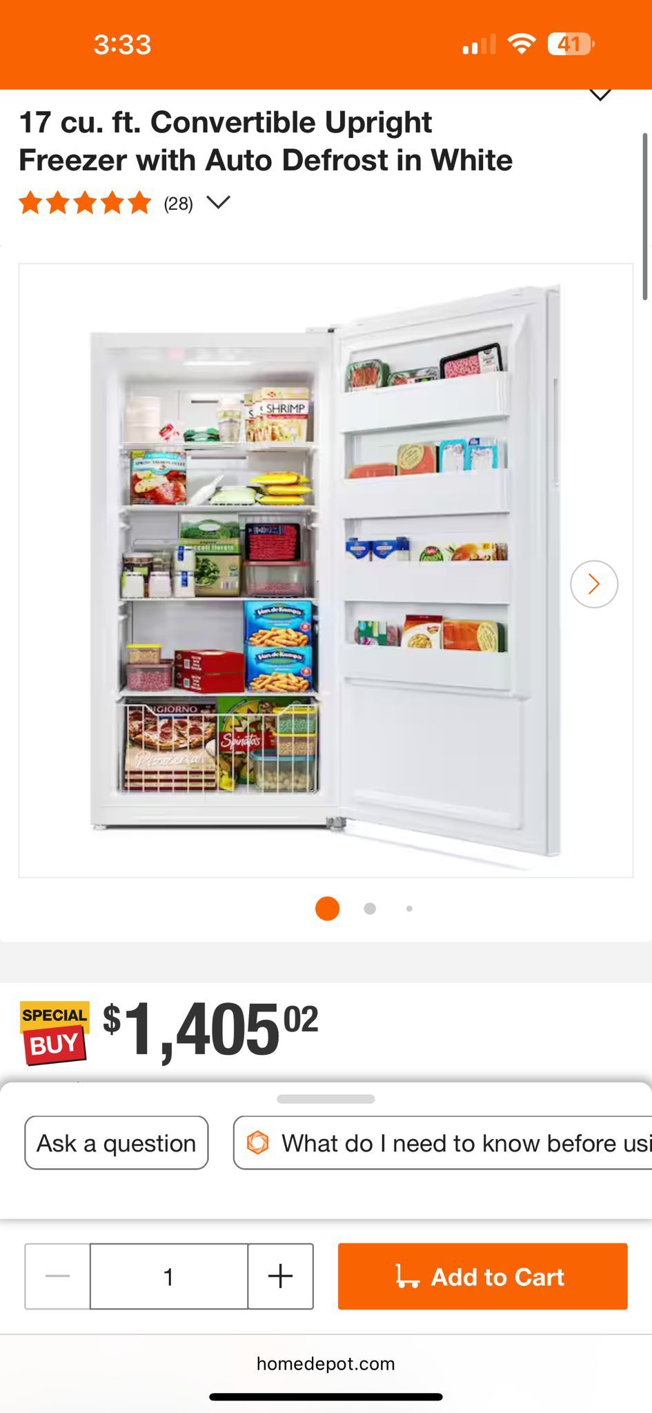 New brand Midea 17 cu. ft. Convertible Upright Freezer with Auto Defrost in White