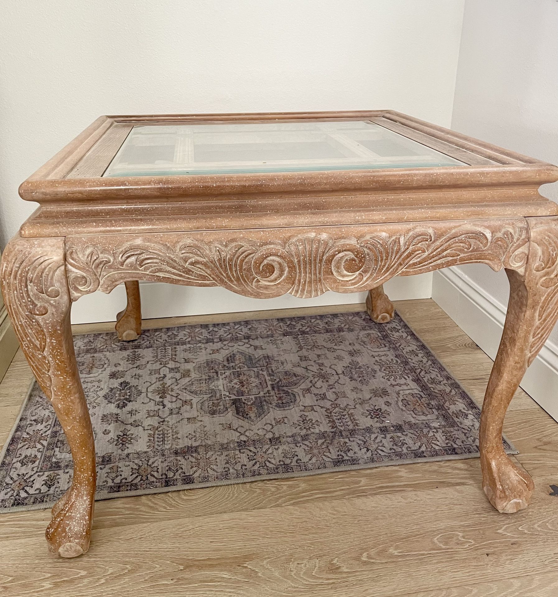 Elegant end table made of wood with glass top Made in USA in NC by Lexington Perfect condition Matching coffee table and long end table also available under separate post