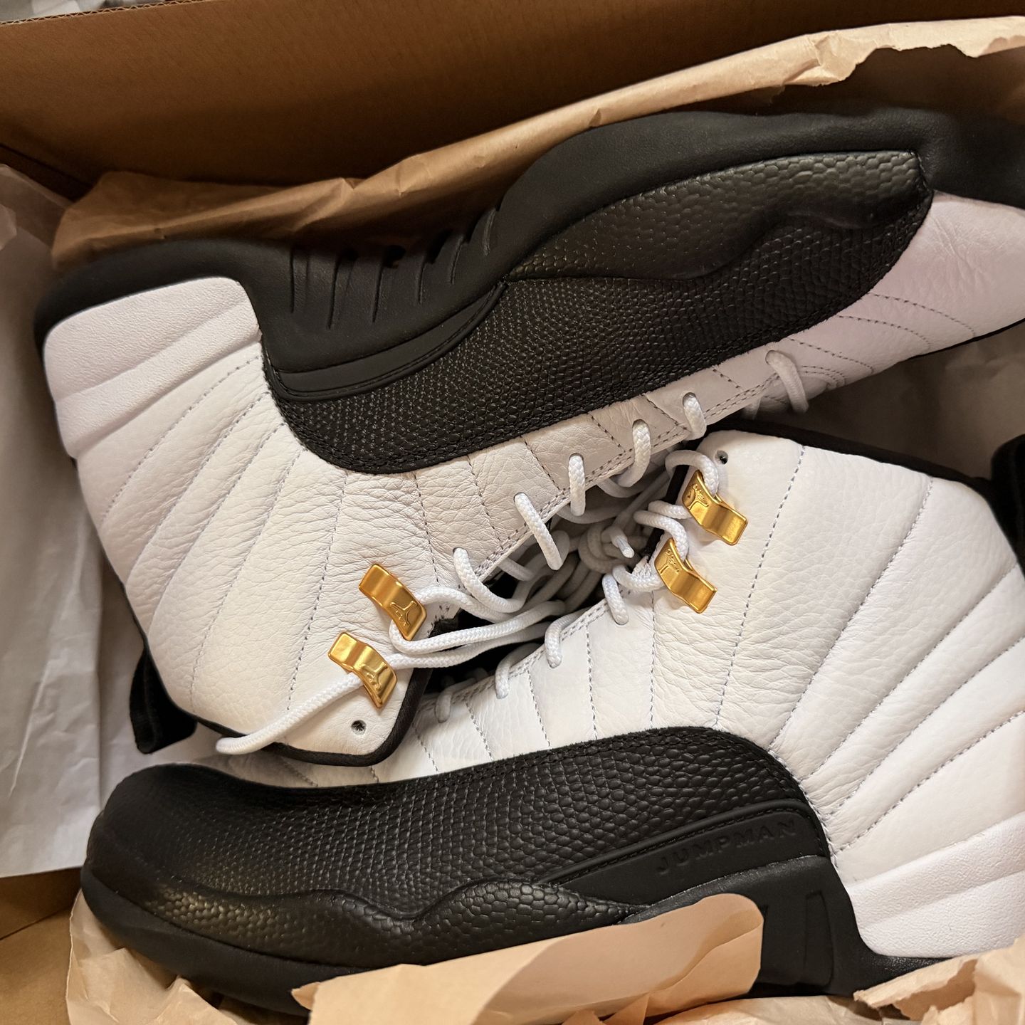 Brand new, never worn Air Jordan 12 “Taxi” in black & white with gold eyelets. 100% authentic, deadstock with original box and paper. Super clean pair—leather is premium and the outsole is untouched. Size 11. No trades. Serious buyers only. Details: • Condition: Brand new / DS • Size: 11 • Includes: Original box & paper • Colorway: Black / White / Taxi Yellow • Authentic: Yes (retail pair) Meetup / Pickup: Local meet-up preferred. Cash/Zelle accepted. Can ship at buyer’s expense.