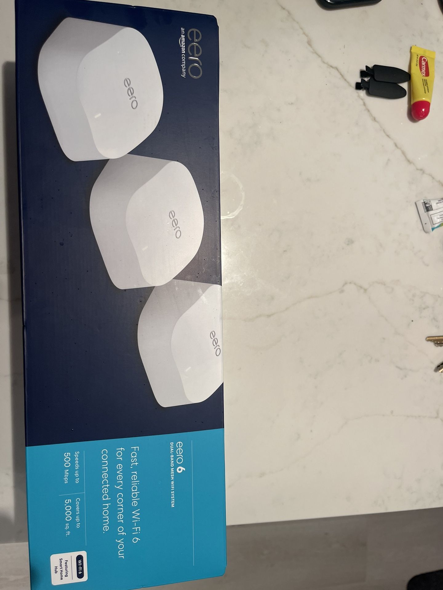 EERO 6 Mesh Wi-fi router, comes with all the factory wiring and paperwork.