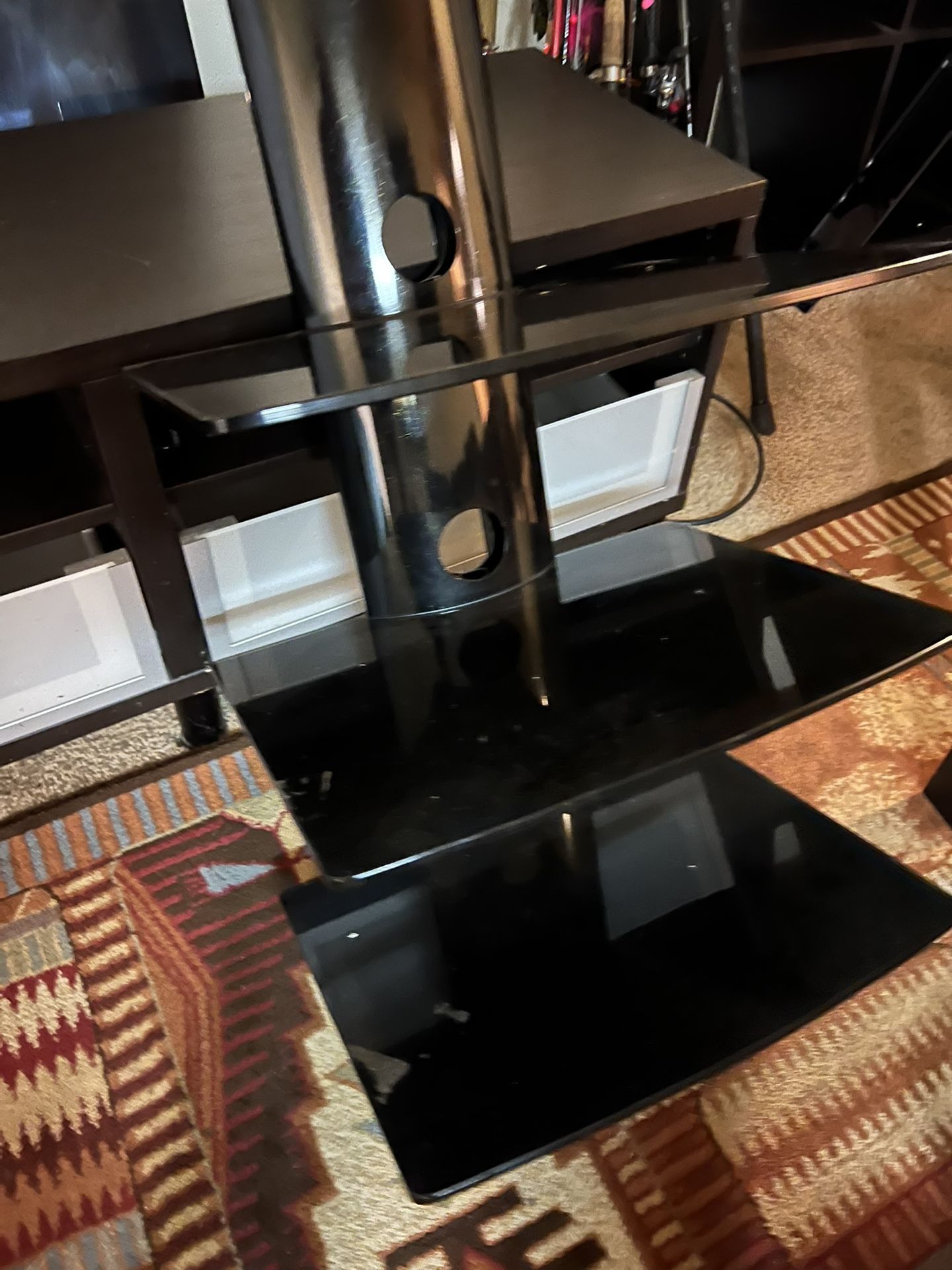 Floating shelves go underneath your TV. Great for a PlayStation or Xbox or anything else. The wires are hidden behind the shelves.